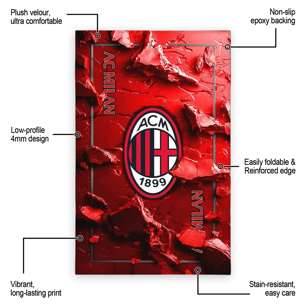 Hit a home run with your favorite team by displaying the AC Milan Rug – Custom Cracked Surface Design Red from MLB Fan Zone. Featuring a bold team design and crafted with plush velour, this durable sports rug offers ultimate comfort for your home or game-day fan cave. With a quality non-slip grip and stay-flat design, it’s the perfect accessory for any die-hard fan ready to rep their team from the living room to the clubhouse.