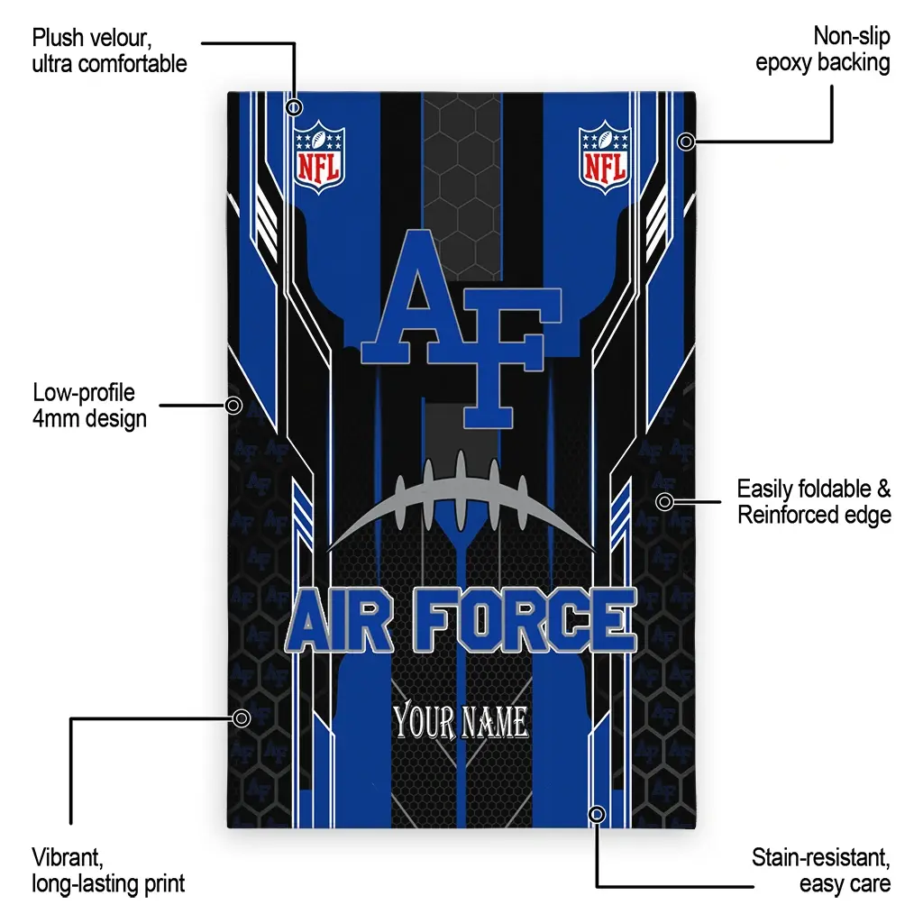 Hit a home run with your favorite team by displaying the Air Force Falcons Rug – Customized Football Laces Blue from MLB Fan Zone. Featuring a bold team design and crafted with plush velour, this durable sports rug offers ultimate comfort for your home or game-day fan cave. With a quality non-slip grip and stay-flat design, it’s the perfect accessory for any die-hard fan ready to rep their team from the living room to the clubhouse.