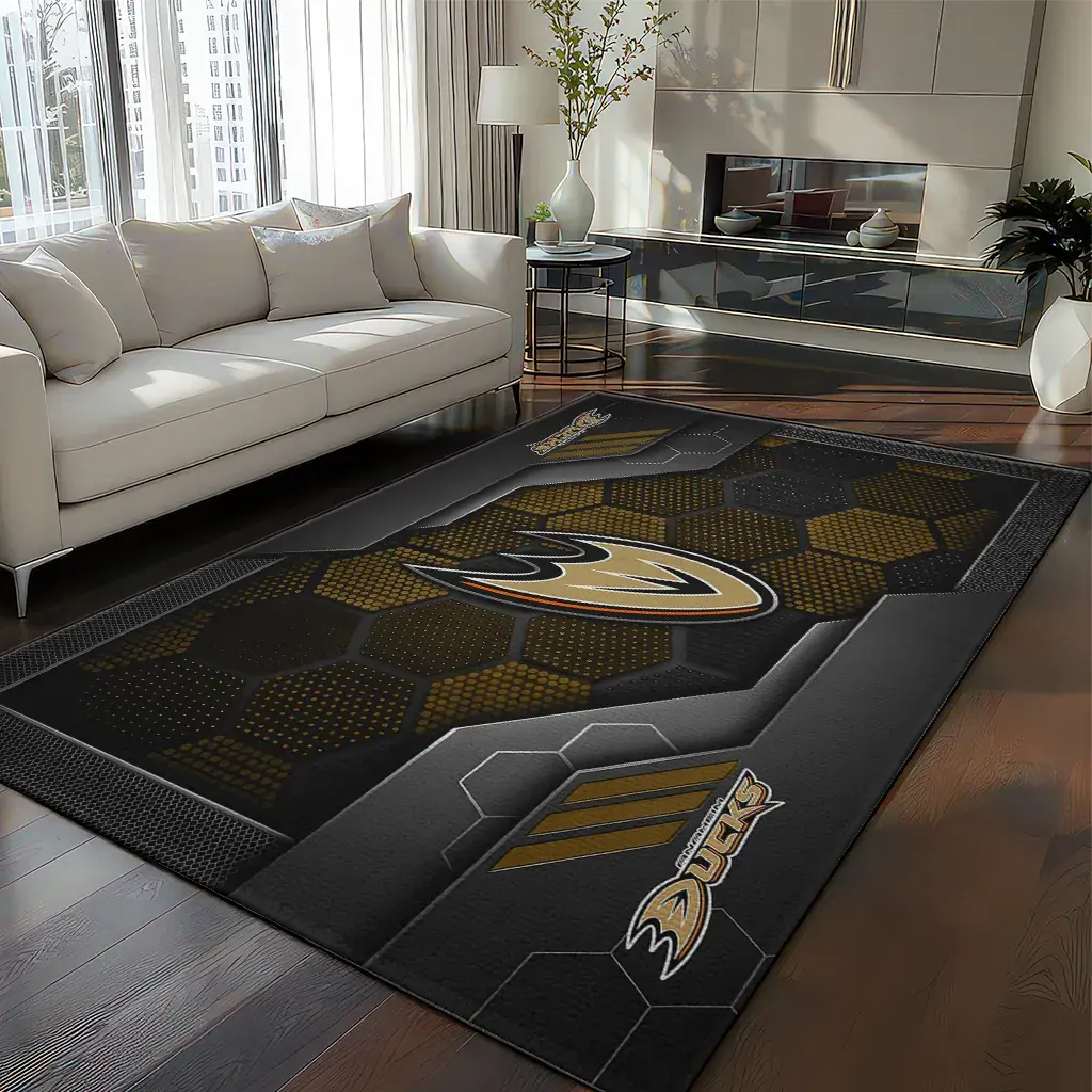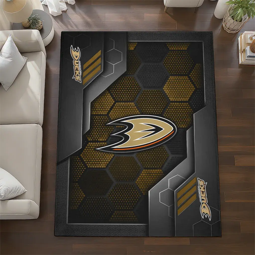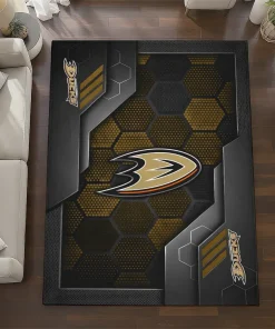 Anaheim Ducks Rug – Hexagonal Grid Pattern Black