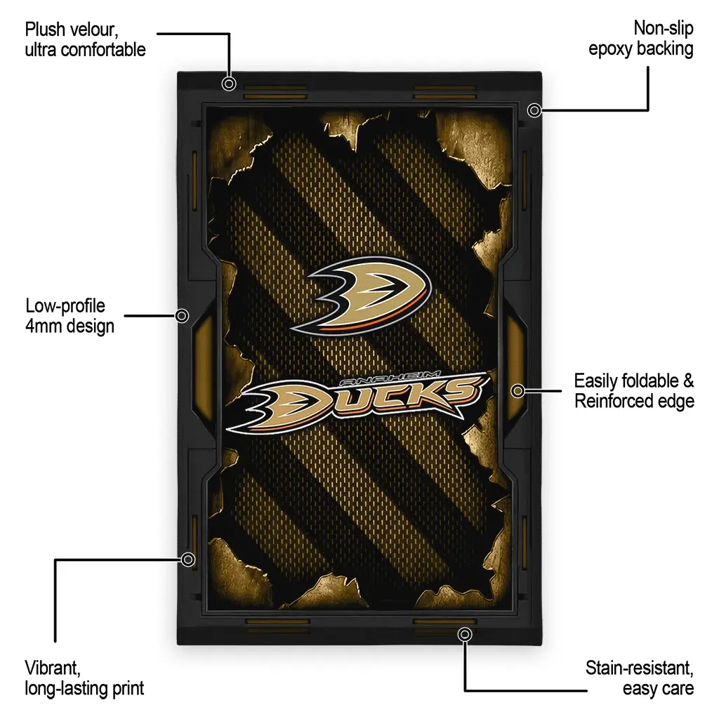 Hit a home run with your favorite team by displaying the Anaheim Ducks Rug – Personalized Torn Mesh Gold from MLB Fan Zone. Featuring a bold team design and crafted with plush velour, this durable sports rug offers ultimate comfort for your home or game-day fan cave. With a quality non-slip grip and stay-flat design, it’s the perfect accessory for any die-hard fan ready to rep their team from the living room to the clubhouse.