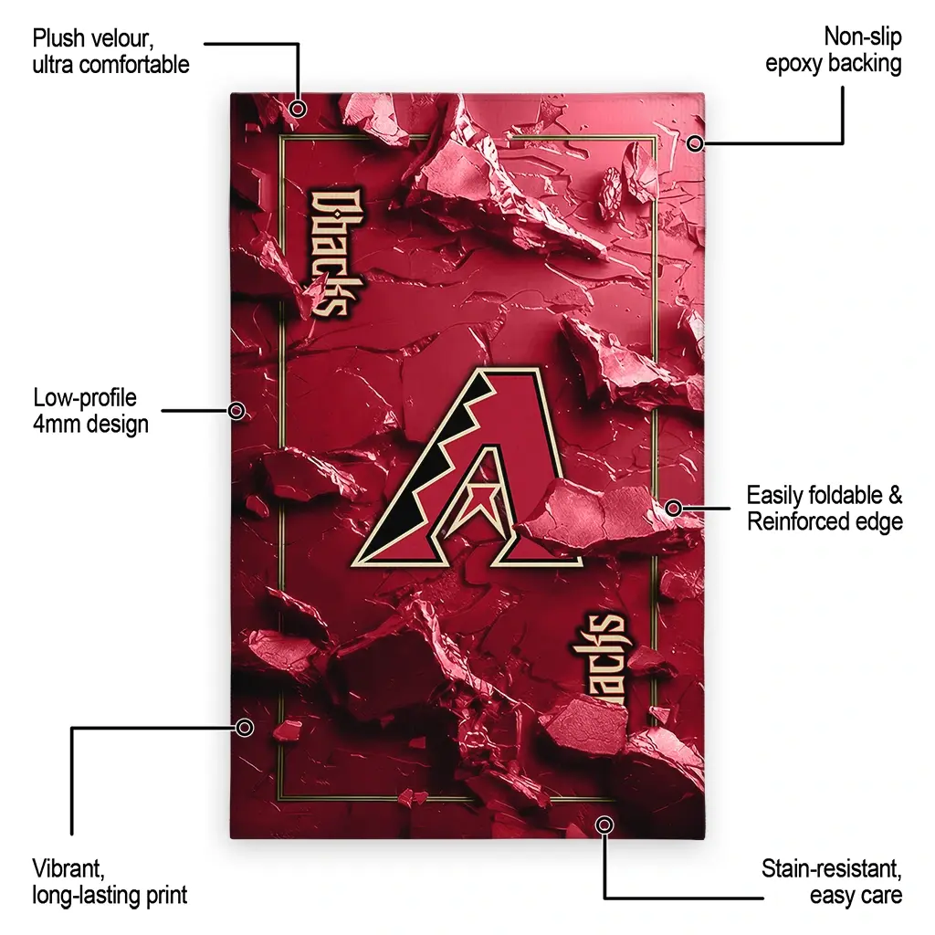 Hit a home run with your favorite team by displaying the Arizona Diamondbacks Rug – Customized Cracked Surface Design Red from MLB Fan Zone. Featuring a bold team design and crafted with plush velour, this durable sports rug offers ultimate comfort for your home or game-day fan cave. With a quality non-slip grip and stay-flat design, it’s the perfect accessory for any die-hard fan ready to rep their team from the living room to the clubhouse.