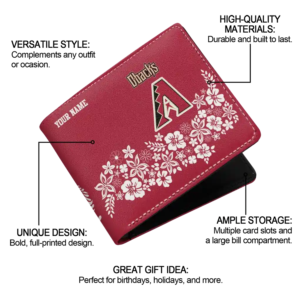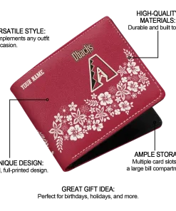 Hit a home run with Arizona Diamondbacks by wearing the Custom Arizona Diamondbacks Floral Cluster Red White Wallet. Featuring a bold team design and crafted with premium materials, this durable sports wallet offers plenty of space for your cards, cash, and game-day essentials. With a secure fold-over closure, it’s the perfect accessory for any die-hard fan ready to rep their team, from the dugout to the streets.