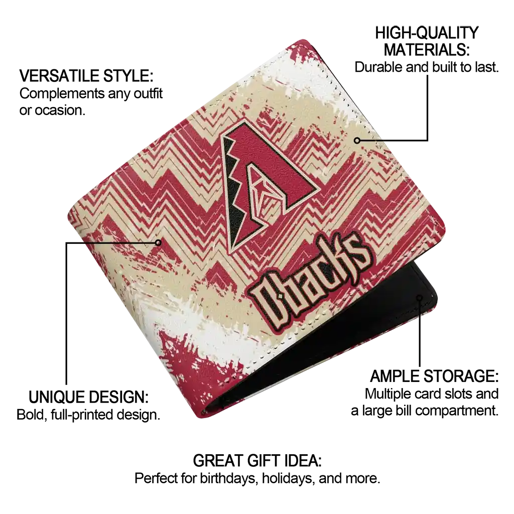 Hit a home run with Arizona Diamondbacks by wearing the Arizona Diamondbacks Red White Wallet. Featuring a bold team design and crafted with premium materials, this durable sports wallet offers plenty of space for your cards, cash, and game-day essentials. With a secure fold-over closure, it’s the perfect accessory for any die-hard fan ready to rep their team, from the dugout to the streets.