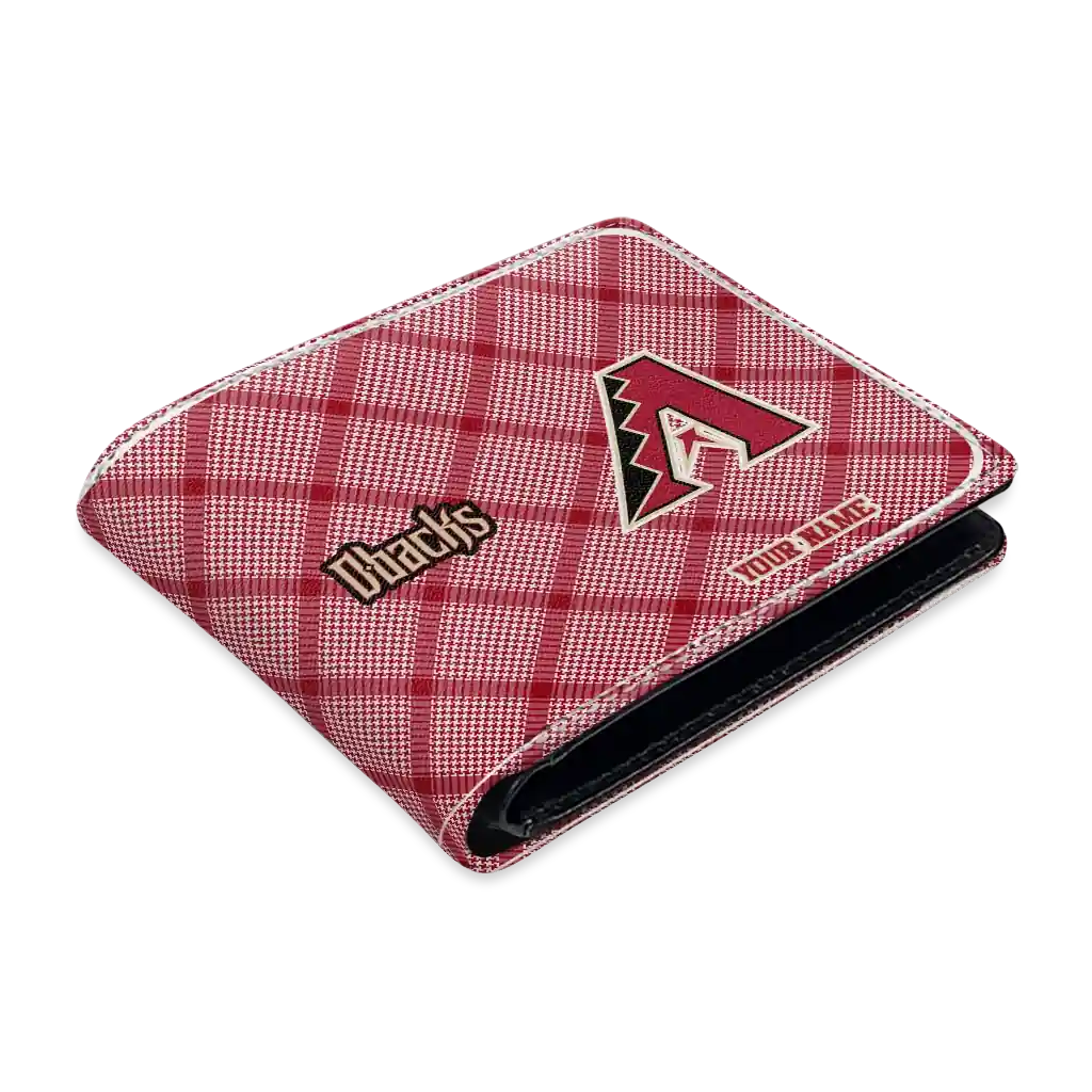 Hit a home run with Arizona Diamondbacks by wearing the Personalized Arizona Diamondbacks Plaid Grid Red Wallet. Featuring a bold team design and crafted with premium materials, this durable sports wallet offers plenty of space for your cards, cash, and game-day essentials. With a secure fold-over closure, it’s the perfect accessory for any die-hard fan ready to rep their team, from the dugout to the streets.