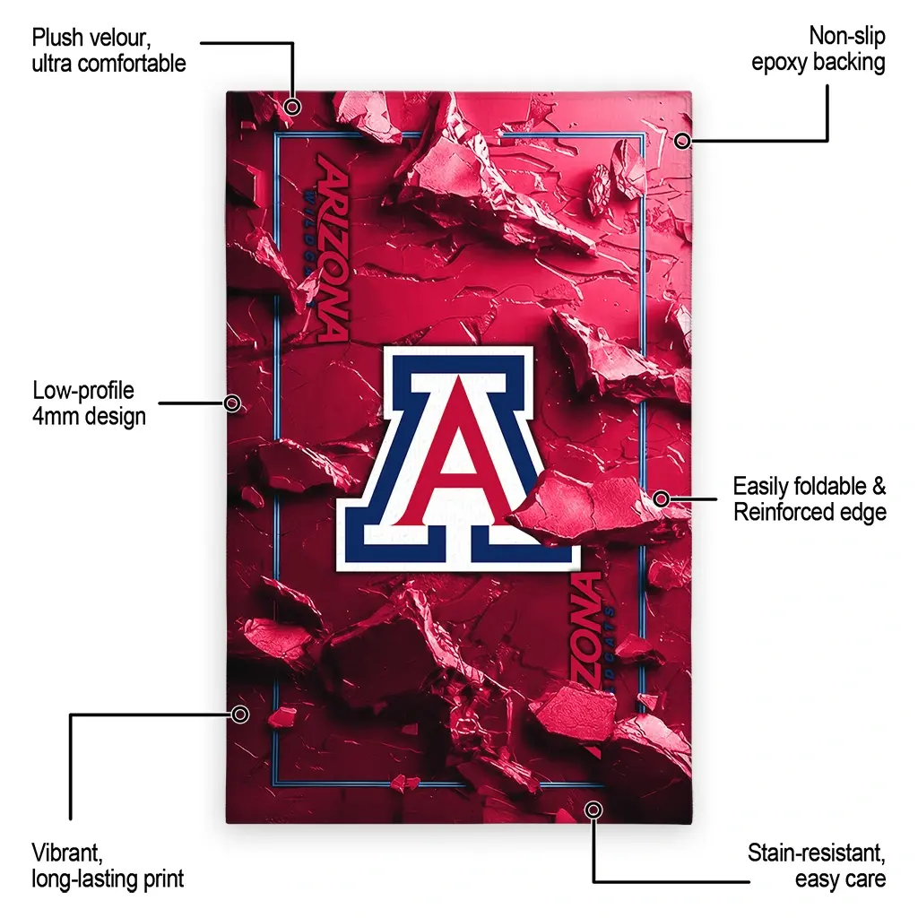 Hit a home run with your favorite team by displaying the Arizona Wildcats Rug – Custom Cracked Surface Design Red from MLB Fan Zone. Featuring a bold team design and crafted with plush velour, this durable sports rug offers ultimate comfort for your home or game-day fan cave. With a quality non-slip grip and stay-flat design, it’s the perfect accessory for any die-hard fan ready to rep their team from the living room to the clubhouse.