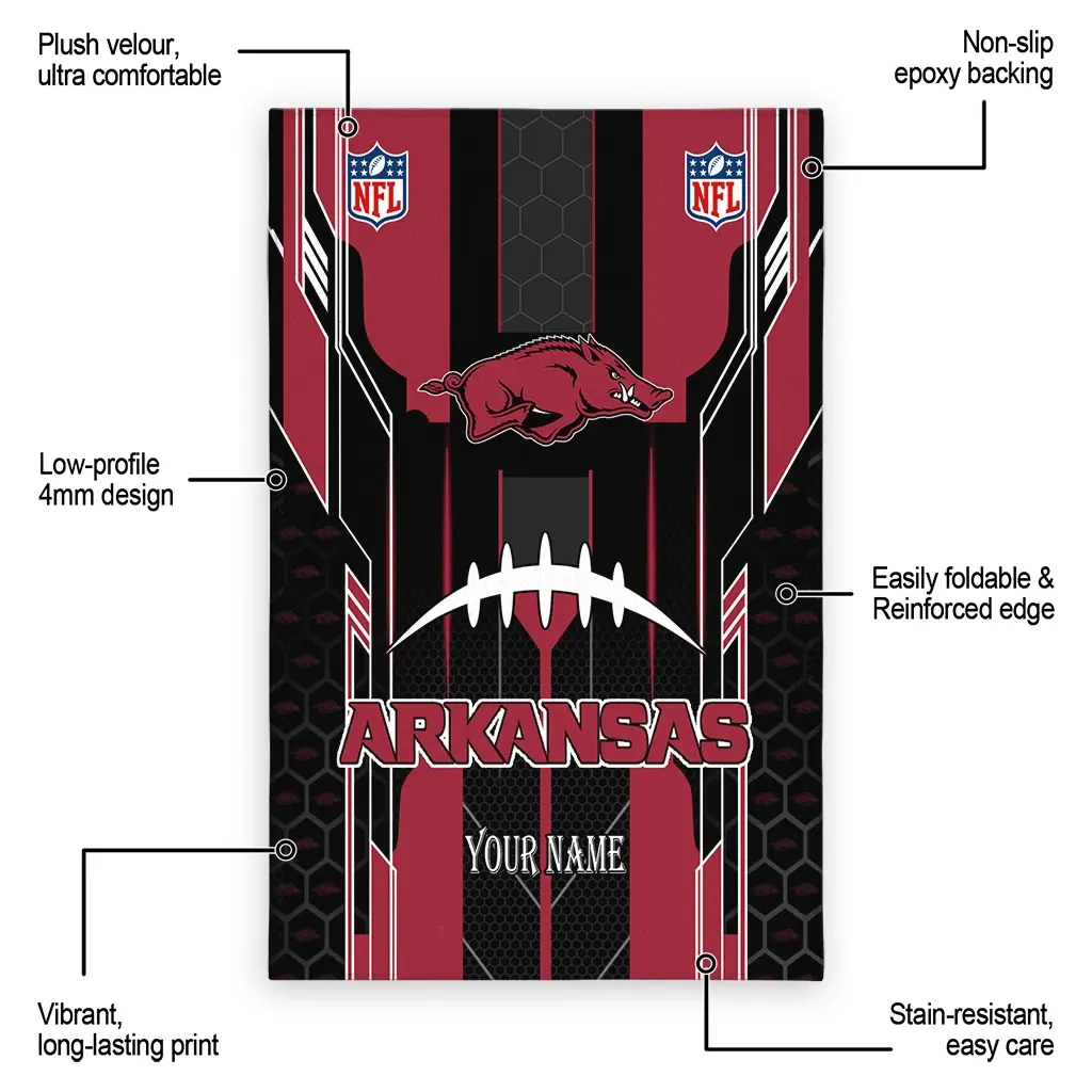Hit a home run with your favorite team by displaying the Arkansas Razorbacks Rug – Custom Football Laces Red from MLB Fan Zone. Featuring a bold team design and crafted with plush velour, this durable sports rug offers ultimate comfort for your home or game-day fan cave. With a quality non-slip grip and stay-flat design, it’s the perfect accessory for any die-hard fan ready to rep their team from the living room to the clubhouse.