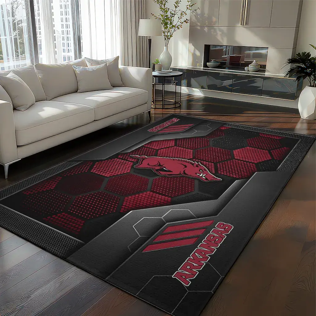 Arkansas Razorbacks Rug – Hexagonal Grid Pattern Red