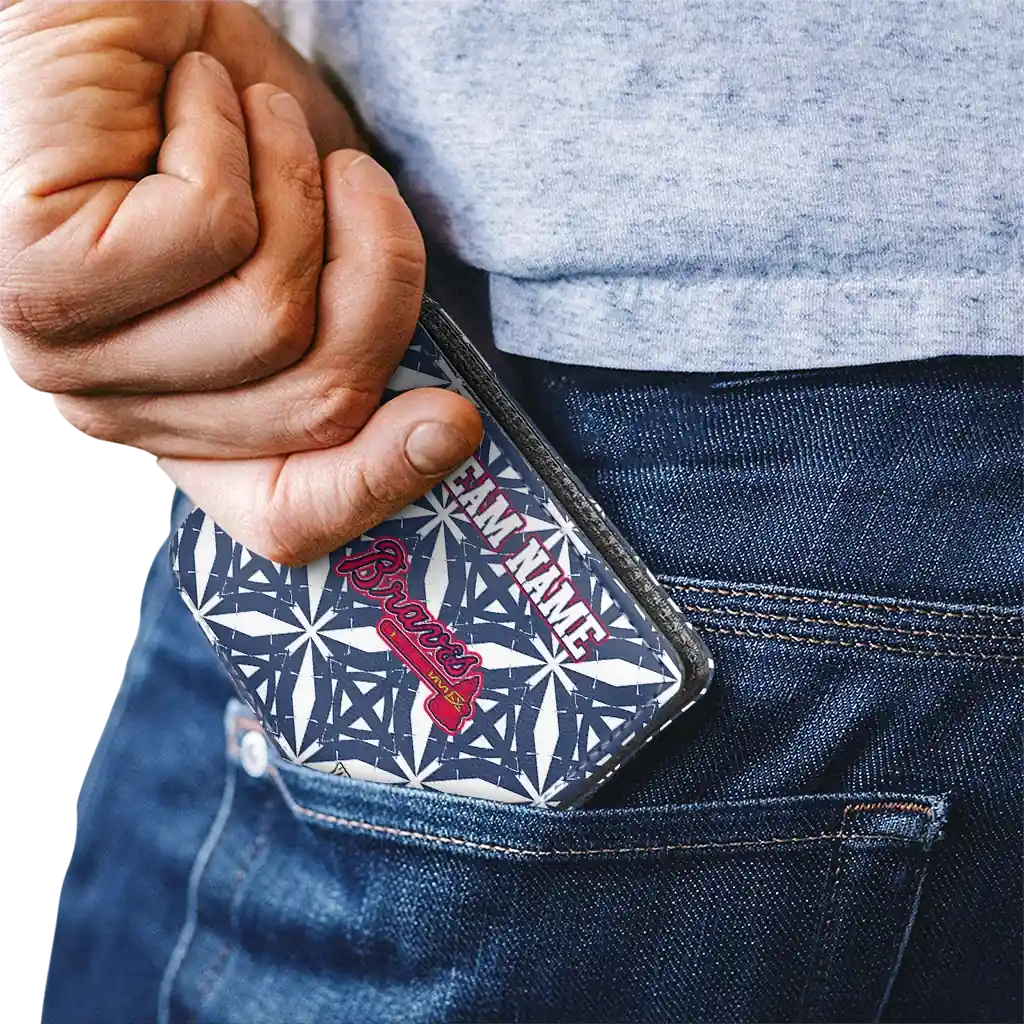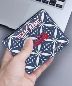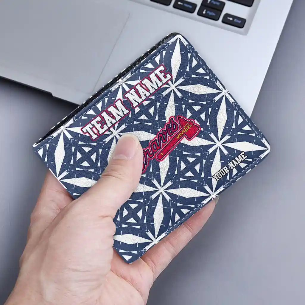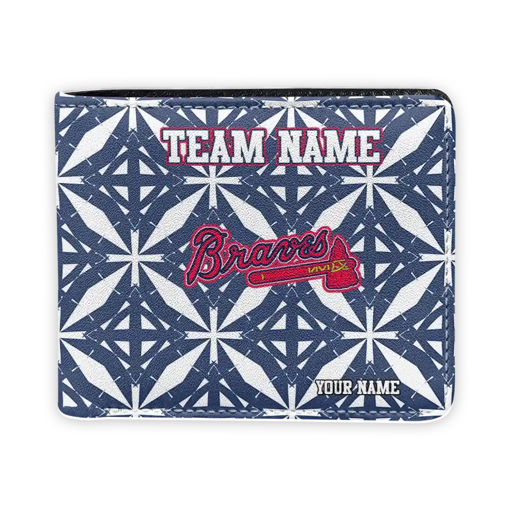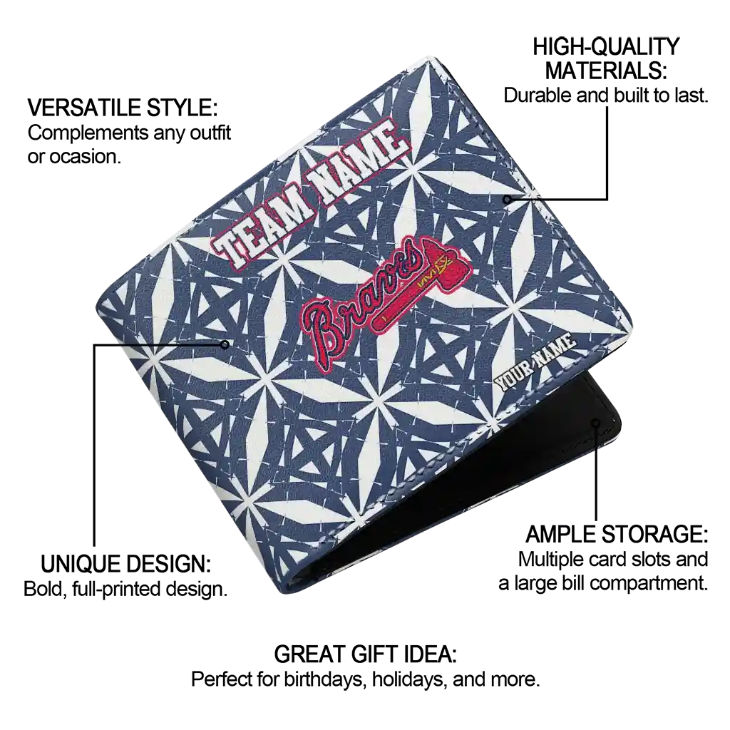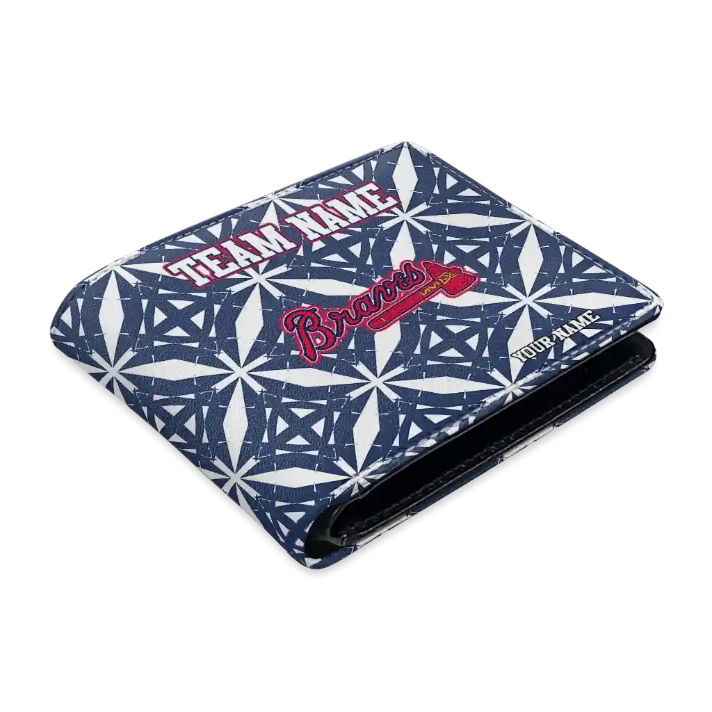 Hit a home run with Atlanta Braves by wearing the Custom Atlanta Braves Geometric Star Navy White Wallet. Featuring a bold team design and crafted with premium materials, this durable sports wallet offers plenty of space for your cards, cash, and game-day essentials. With a secure fold-over closure, it’s the perfect accessory for any die-hard fan ready to rep their team, from the dugout to the streets.