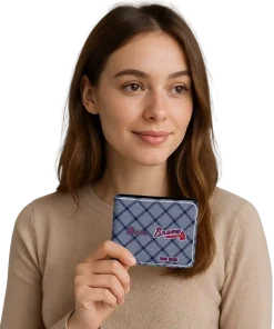 Hit a home run with Atlanta Braves by wearing the Customized Atlanta Braves Plaid Grid Navy Wallet. Featuring a bold team design and crafted with premium materials, this durable sports wallet offers plenty of space for your cards, cash, and game-day essentials. With a secure fold-over closure, it’s the perfect accessory for any die-hard fan ready to rep their team, from the dugout to the streets.