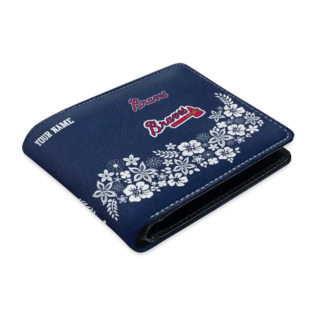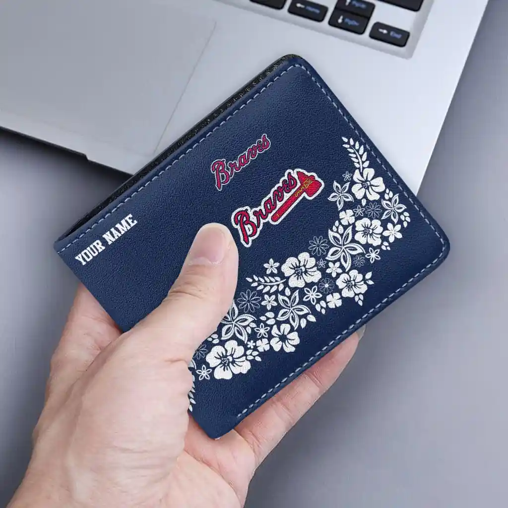 Atlanta Braves Wallet – Personalized Floral Cluster Navy White