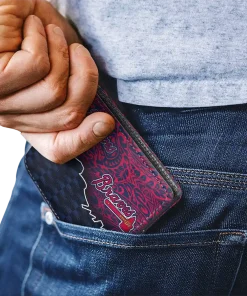 Hit a home run with Atlanta Braves by wearing the Atlanta Braves Tribal Fade Fusion Navy Black Wallet. Featuring a bold team design and crafted with premium materials, this durable sports wallet offers plenty of space for your cards, cash, and game-day essentials. With a secure fold-over closure, it’s the perfect accessory for any die-hard fan ready to rep their team, from the dugout to the streets.