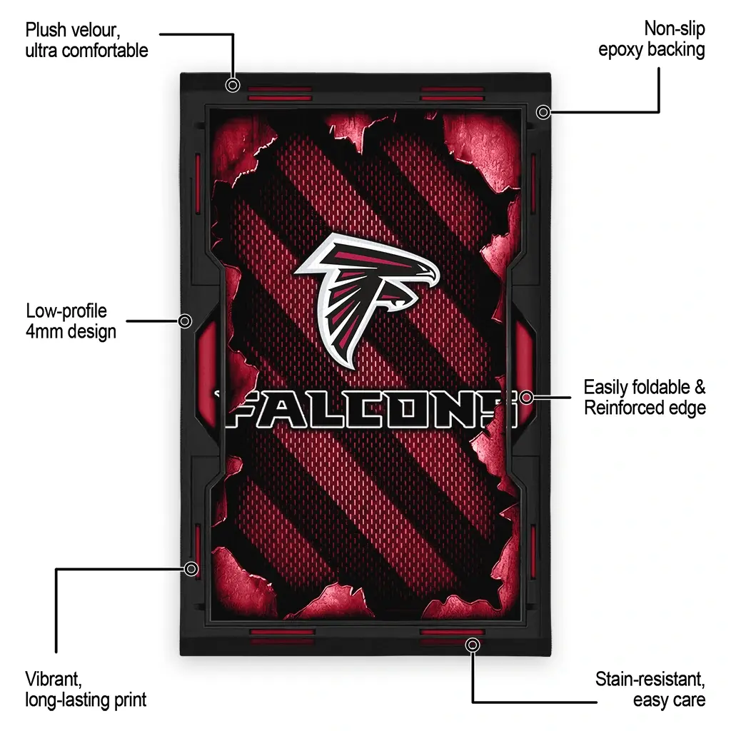 Hit a home run with your favorite team by displaying the Atlanta Falcons Rug – Customized Torn Mesh Red from MLB Fan Zone. Featuring a bold team design and crafted with plush velour, this durable sports rug offers ultimate comfort for your home or game-day fan cave. With a quality non-slip grip and stay-flat design, it’s the perfect accessory for any die-hard fan ready to rep their team from the living room to the clubhouse.