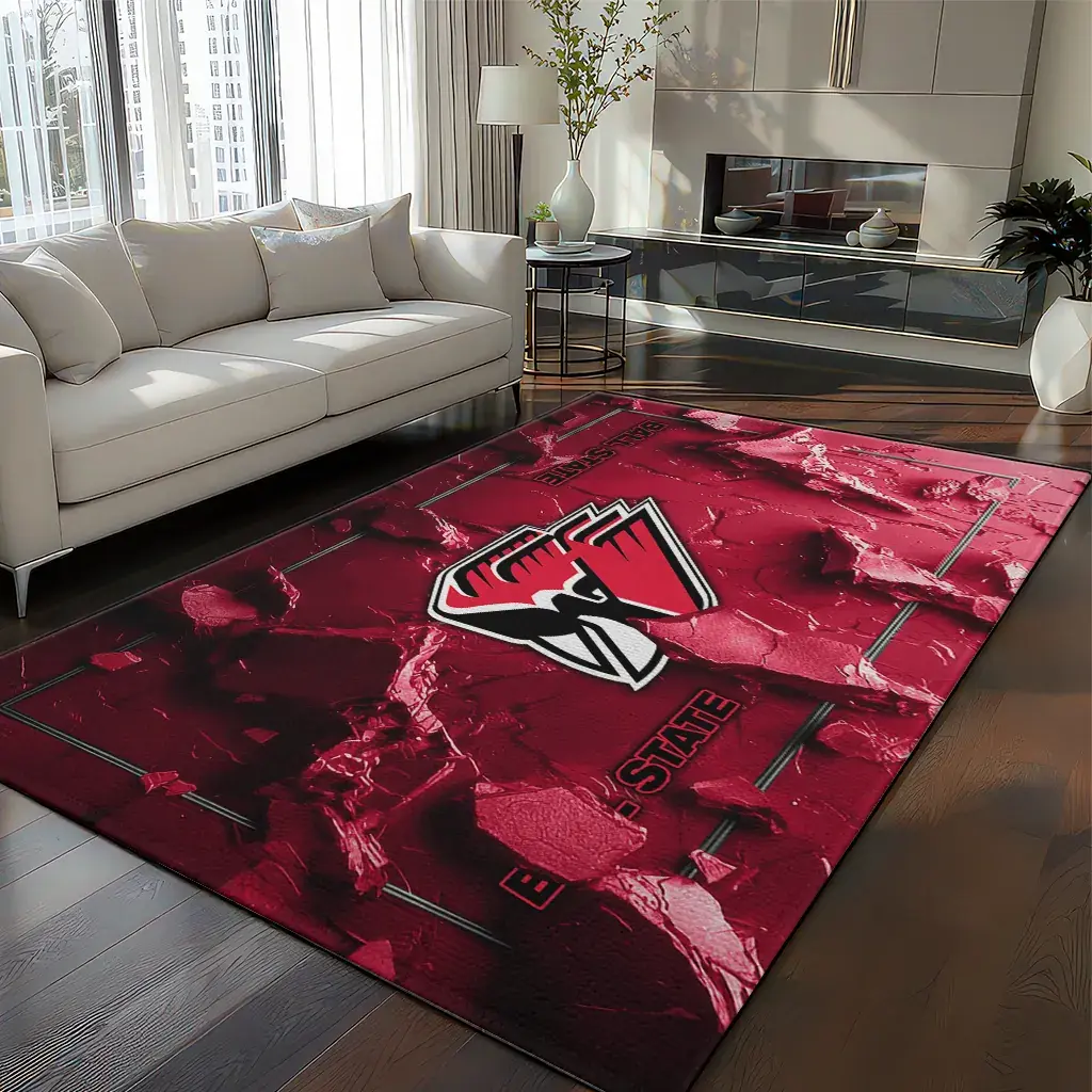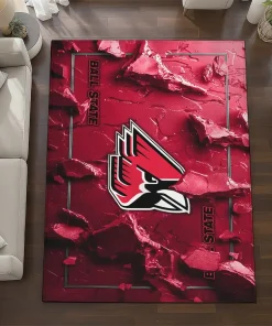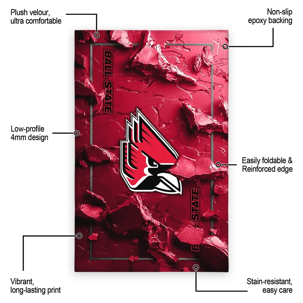Ball State Cardinals Rug – Cracked Surface Design Red