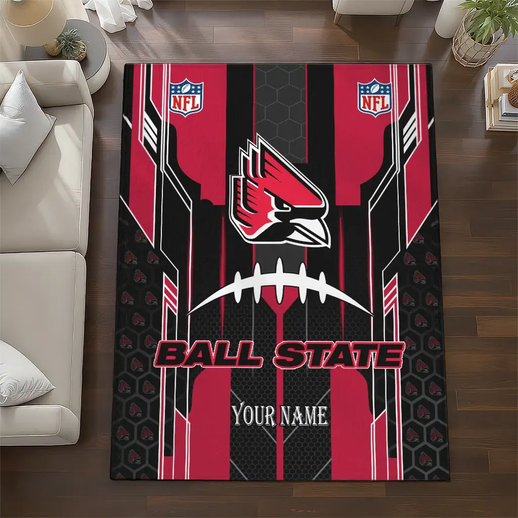 Ball State Cardinals Rug – Personalized Football Laces Red
