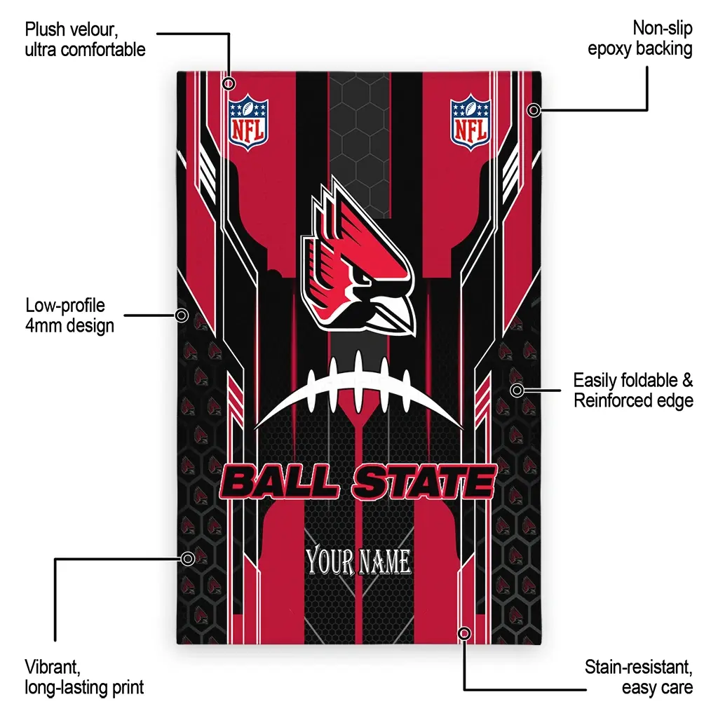 Hit a home run with your favorite team by displaying the Ball State Cardinals Rug – Personalized Football Laces Red from MLB Fan Zone. Featuring a bold team design and crafted with plush velour, this durable sports rug offers ultimate comfort for your home or game-day fan cave. With a quality non-slip grip and stay-flat design, it’s the perfect accessory for any die-hard fan ready to rep their team from the living room to the clubhouse.