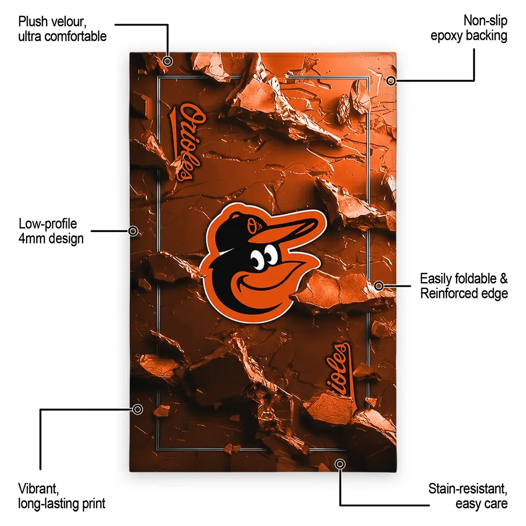 Hit a home run with your favorite team by displaying the Baltimore Orioles Rug – Custom Cracked Surface Design Orange from MLB Fan Zone. Featuring a bold team design and crafted with plush velour, this durable sports rug offers ultimate comfort for your home or game-day fan cave. With a quality non-slip grip and stay-flat design, it’s the perfect accessory for any die-hard fan ready to rep their team from the living room to the clubhouse.