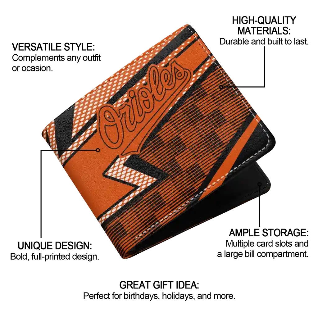 Hit a home run with Baltimore Orioles by wearing the Baltimore Orioles Arrow Mesh Orange Wallet. Featuring a bold team design and crafted with premium materials, this durable sports wallet offers plenty of space for your cards, cash, and game-day essentials. With a secure fold-over closure, it’s the perfect accessory for any die-hard fan ready to rep their team, from the dugout to the streets.