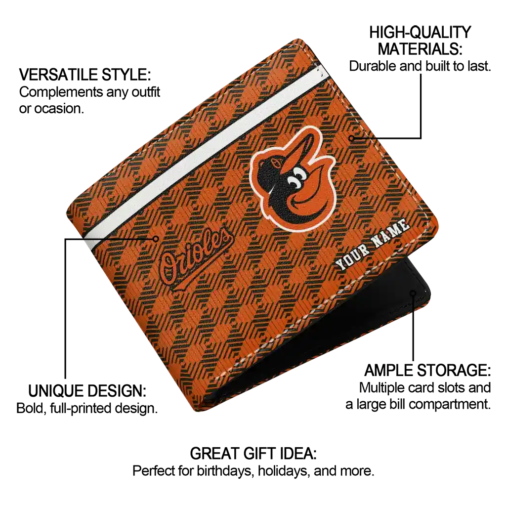 Hit a home run with Baltimore Orioles by wearing the Custom Baltimore Orioles Cube Illusion Orange Wallet. Featuring a bold team design and crafted with premium materials, this durable sports wallet offers plenty of space for your cards, cash, and game-day essentials. With a secure fold-over closure, it’s the perfect accessory for any die-hard fan ready to rep their team, from the dugout to the streets.