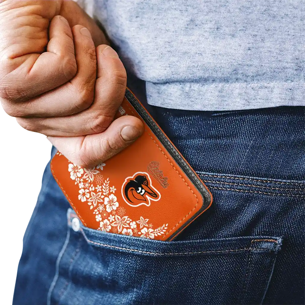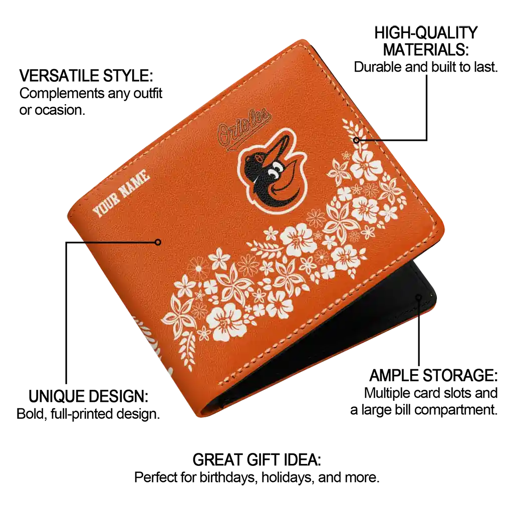 Hit a home run with Baltimore Orioles by wearing the Customized Baltimore Orioles Floral Cluster Orange White Wallet. Featuring a bold team design and crafted with premium materials, this durable sports wallet offers plenty of space for your cards, cash, and game-day essentials. With a secure fold-over closure, it’s the perfect accessory for any die-hard fan ready to rep their team, from the dugout to the streets.