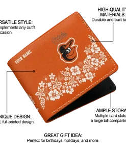 Baltimore Orioles Wallet – Customized Floral Cluster Orange White