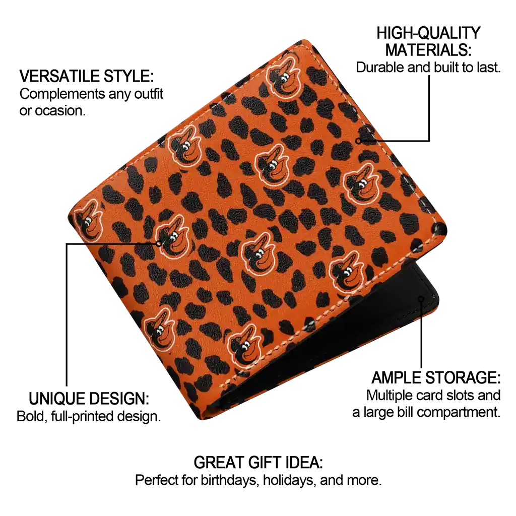 Hit a home run with Baltimore Orioles by wearing the Baltimore Orioles Leopard Texture Orange Wallet. Featuring a bold team design and crafted with premium materials, this durable sports wallet offers plenty of space for your cards, cash, and game-day essentials. With a secure fold-over closure, it’s the perfect accessory for any die-hard fan ready to rep their team, from the dugout to the streets.