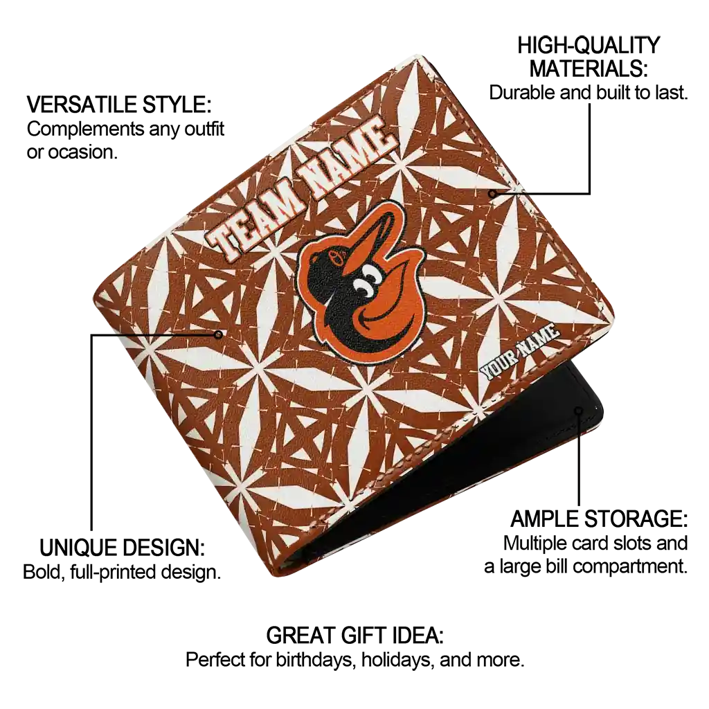 Baltimore Orioles Wallet – Personalized Geometric Star Orange White