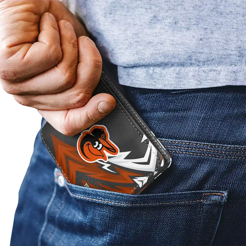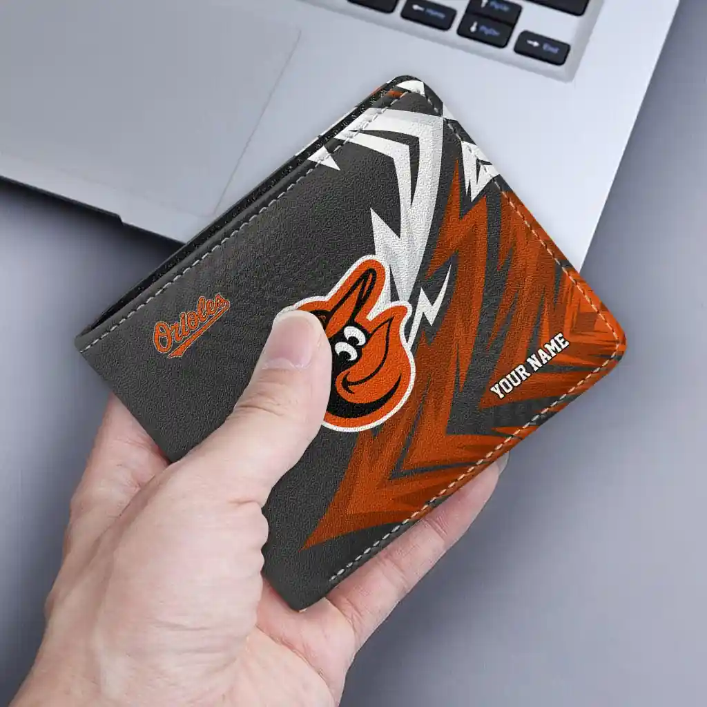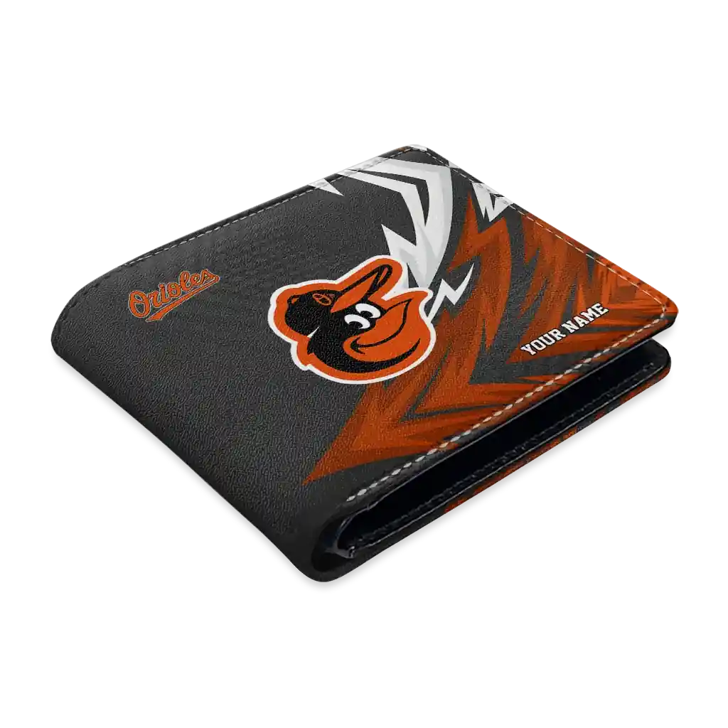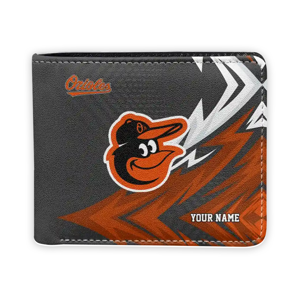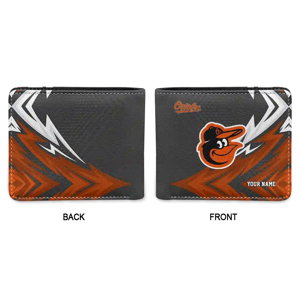 Hit a home run with Baltimore Orioles by wearing the Personalized Baltimore Orioles Sharp Arrow Streaks Orange Black Wallet. Featuring a bold team design and crafted with premium materials, this durable sports wallet offers plenty of space for your cards, cash, and game-day essentials. With a secure fold-over closure, it’s the perfect accessory for any die-hard fan ready to rep their team, from the dugout to the streets.
