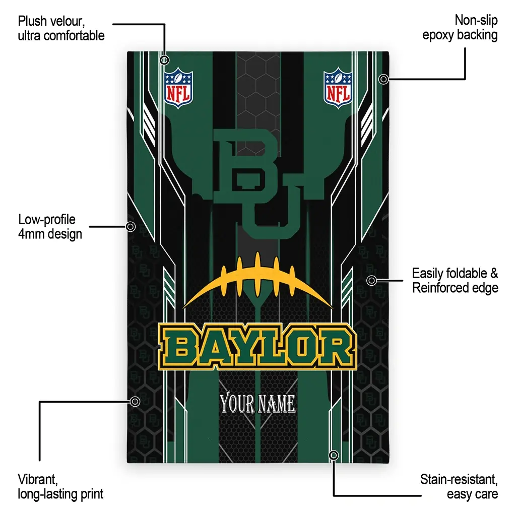 Hit a home run with your favorite team by displaying the Baylor Bears Rug – Custom Football Laces Green from MLB Fan Zone. Featuring a bold team design and crafted with plush velour, this durable sports rug offers ultimate comfort for your home or game-day fan cave. With a quality non-slip grip and stay-flat design, it’s the perfect accessory for any die-hard fan ready to rep their team from the living room to the clubhouse.