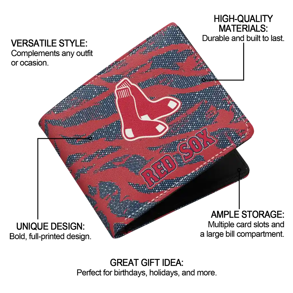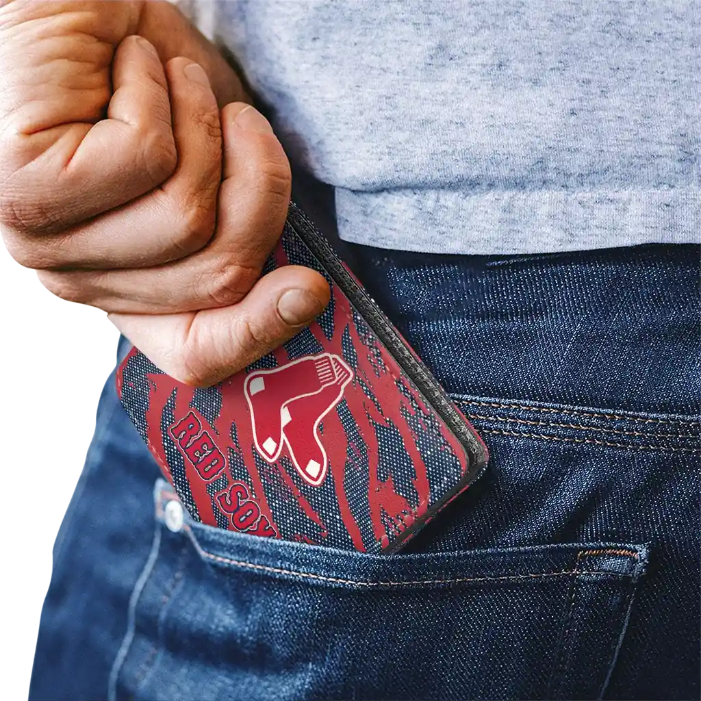 Hit a home run with Boston Red Sox by wearing the Boston Red Sox Abstract Stripes Red Wallet. Featuring a bold team design and crafted with premium materials, this durable sports wallet offers plenty of space for your cards, cash, and game-day essentials. With a secure fold-over closure, it’s the perfect accessory for any die-hard fan ready to rep their team, from the dugout to the streets.