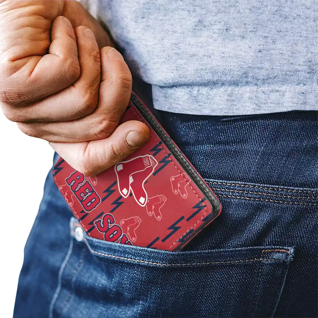 Hit a home run with Boston Red Sox by wearing the Boston Red Sox Bolt Rows Red Wallet. Featuring a bold team design and crafted with premium materials, this durable sports wallet offers plenty of space for your cards, cash, and game-day essentials. With a secure fold-over closure, it’s the perfect accessory for any die-hard fan ready to rep their team, from the dugout to the streets.