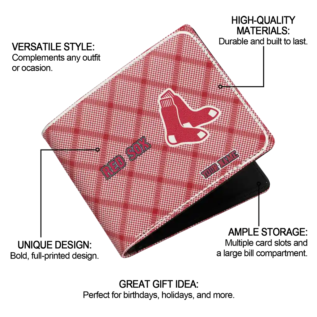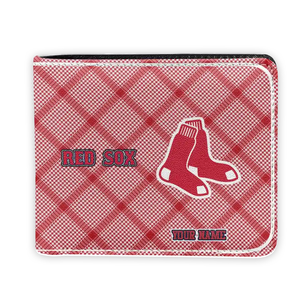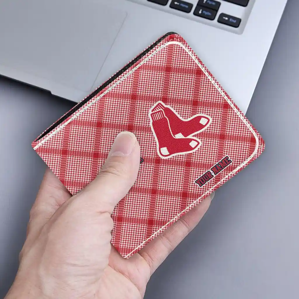 Boston Red Sox Wallet – Personalized Plaid Grid Red