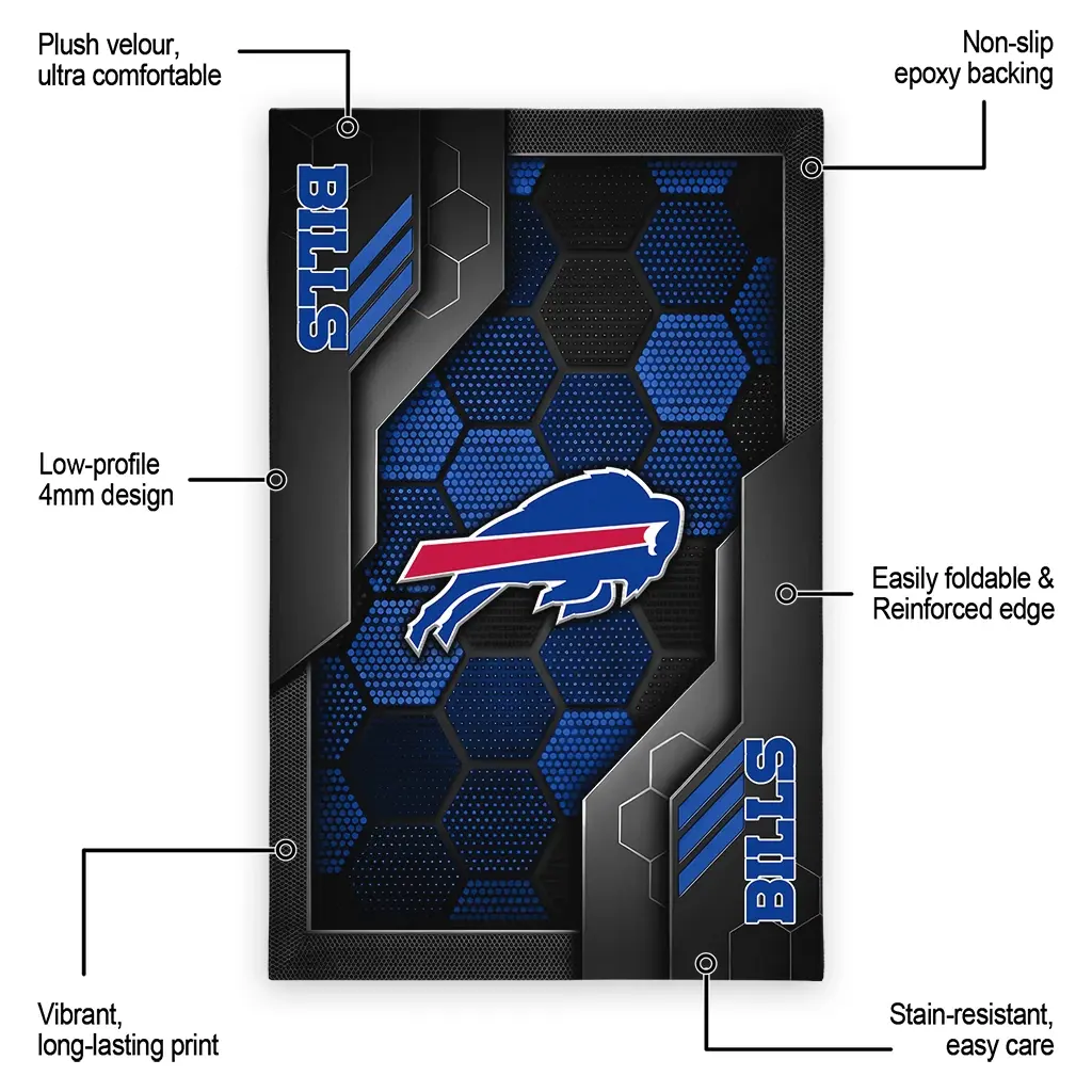 Hit a home run with your favorite team by displaying the Buffalo Bills Rug – Customized Hexagonal Grid Pattern Blue from MLB Fan Zone. Featuring a bold team design and crafted with plush velour, this durable sports rug offers ultimate comfort for your home or game-day fan cave. With a quality non-slip grip and stay-flat design, it’s the perfect accessory for any die-hard fan ready to rep their team from the living room to the clubhouse.