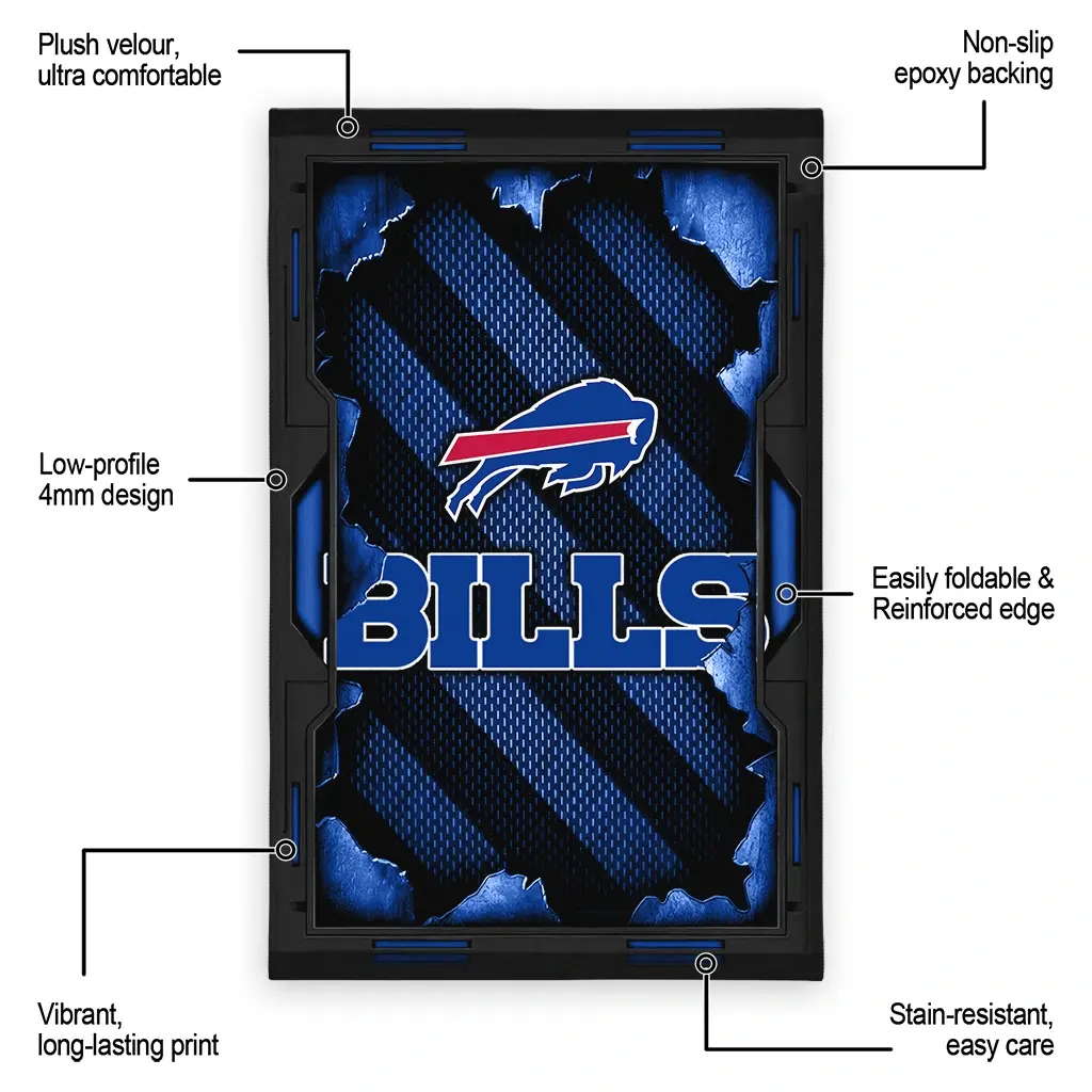 Hit a home run with your favorite team by displaying the Buffalo Bills Rug – Custom Torn Mesh Blue from MLB Fan Zone. Featuring a bold team design and crafted with plush velour, this durable sports rug offers ultimate comfort for your home or game-day fan cave. With a quality non-slip grip and stay-flat design, it’s the perfect accessory for any die-hard fan ready to rep their team from the living room to the clubhouse.