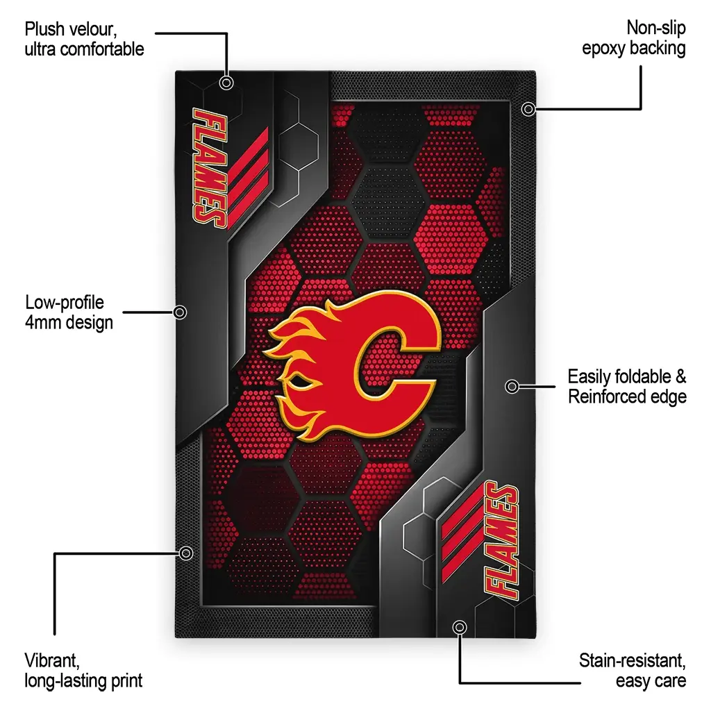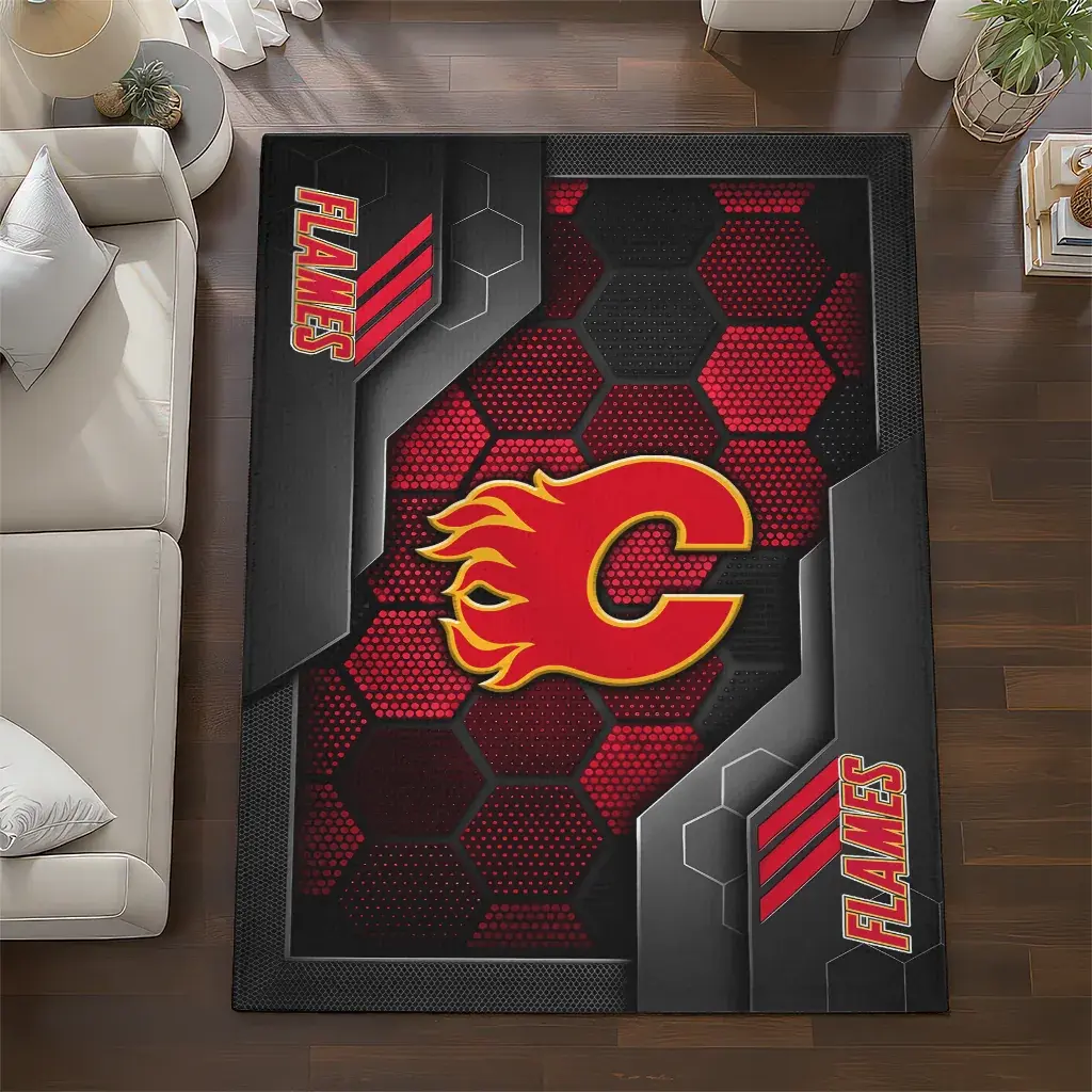 Calgary Flames Rug – Hexagonal Grid Pattern Red