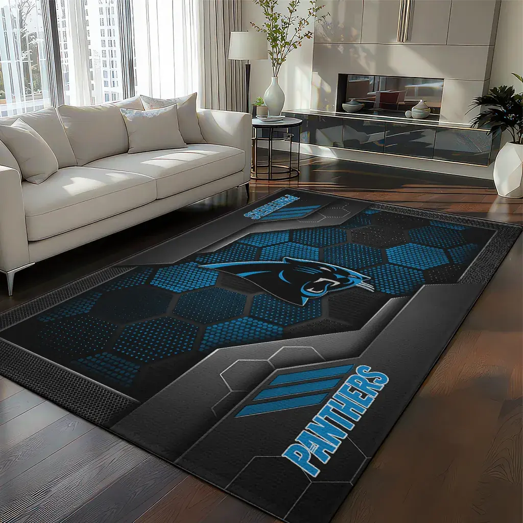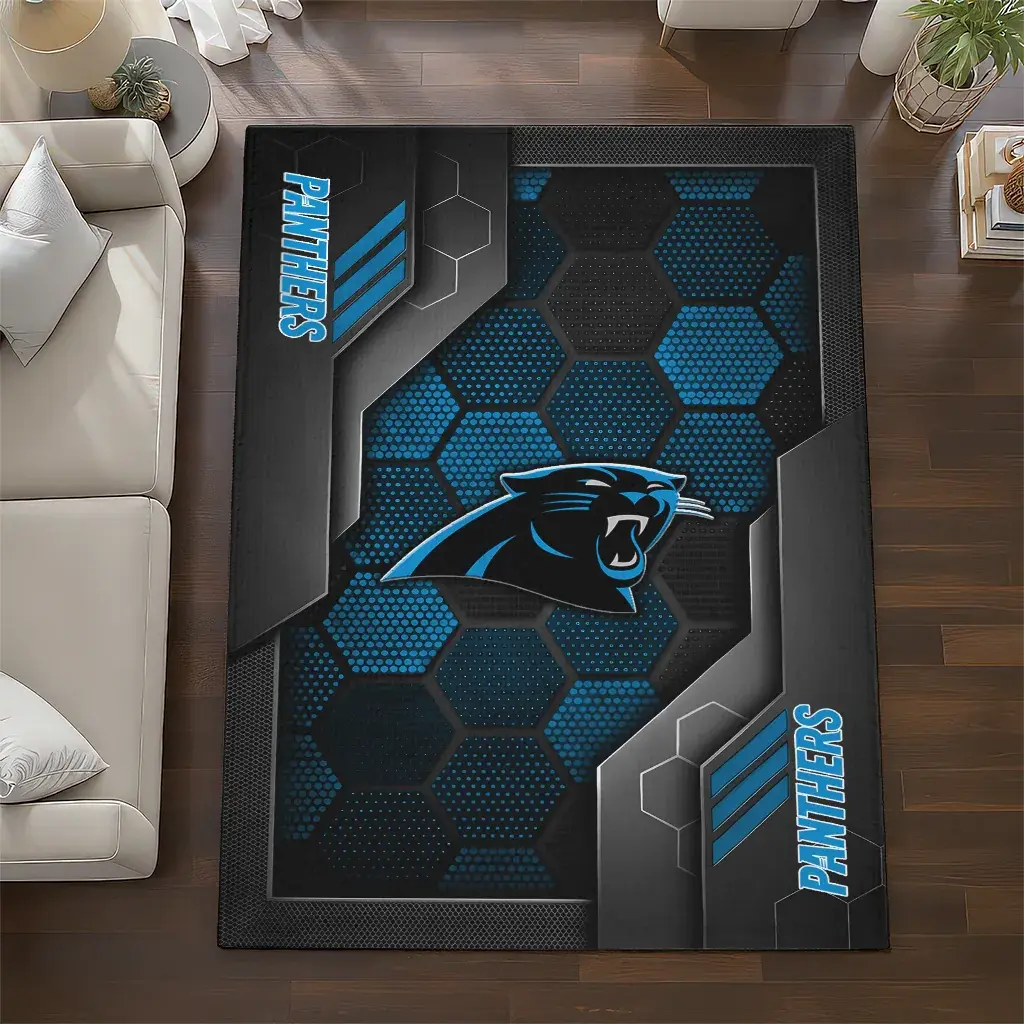 Carolina Panthers Rug – Hexagonal Grid Pattern Blue