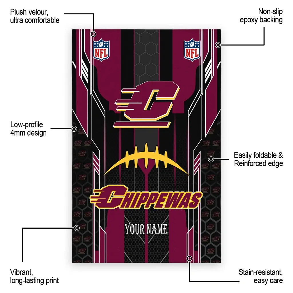 Hit a home run with your favorite team by displaying the Central Michigan Chippewas Rug – Customized Football Laces Maroon from MLB Fan Zone. Featuring a bold team design and crafted with plush velour, this durable sports rug offers ultimate comfort for your home or game-day fan cave. With a quality non-slip grip and stay-flat design, it’s the perfect accessory for any die-hard fan ready to rep their team from the living room to the clubhouse.