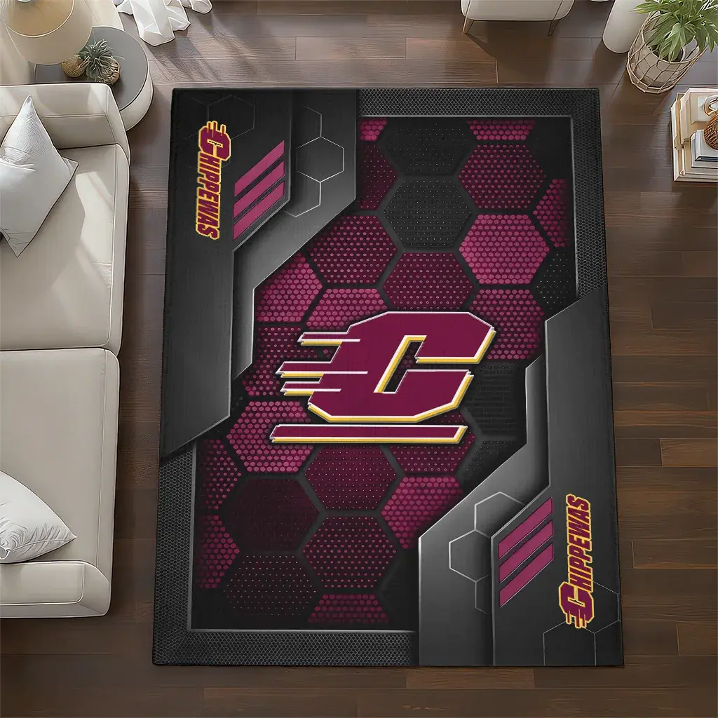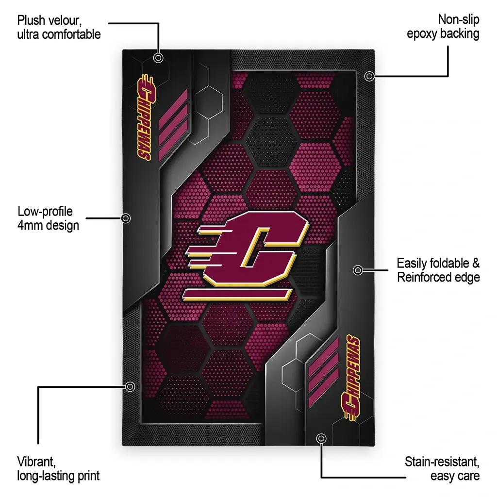 Central Michigan Chippewas Rug – Hexagonal Grid Pattern Maroon