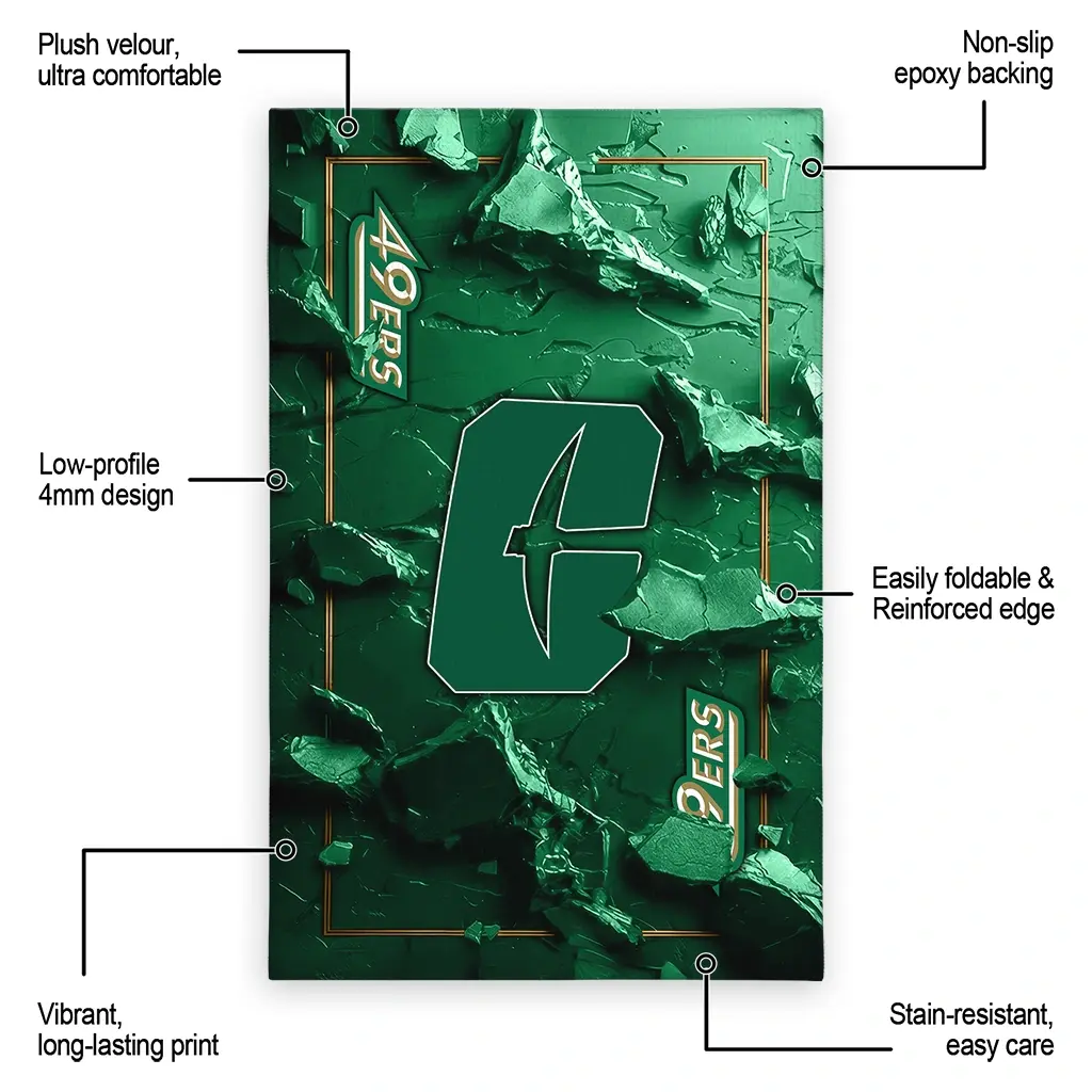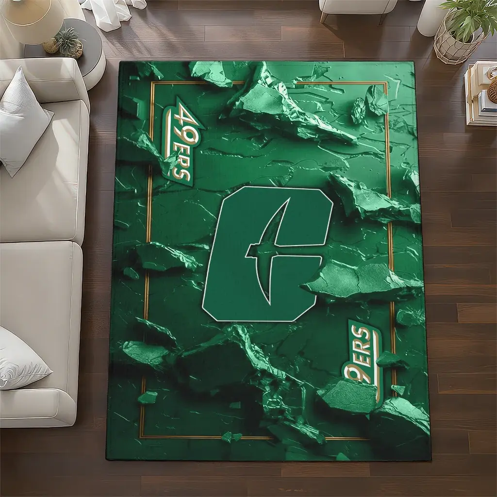 Charlotte 49ers Rug – Cracked Surface Design Green