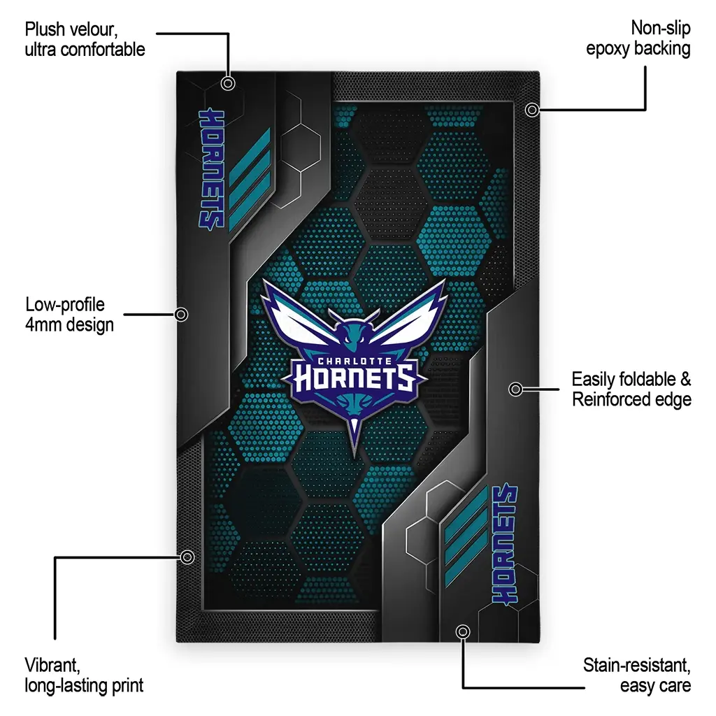 Hit a home run with your favorite team by displaying the Charlotte Hornets Rug – Customized Hexagonal Grid Pattern Teal from MLB Fan Zone. Featuring a bold team design and crafted with plush velour, this durable sports rug offers ultimate comfort for your home or game-day fan cave. With a quality non-slip grip and stay-flat design, it’s the perfect accessory for any die-hard fan ready to rep their team from the living room to the clubhouse.