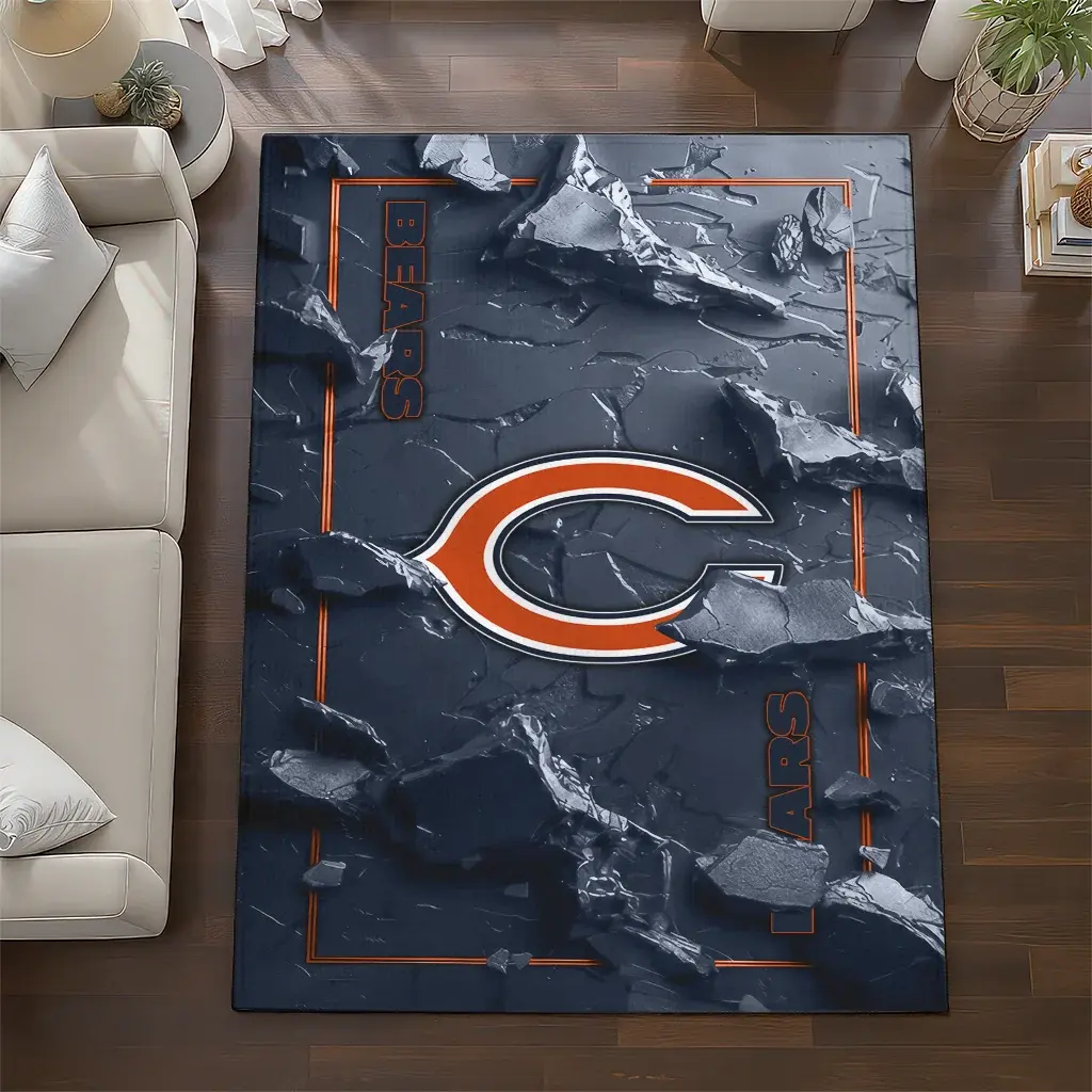 Chicago Bears Rug – Cracked Surface Design Blue
