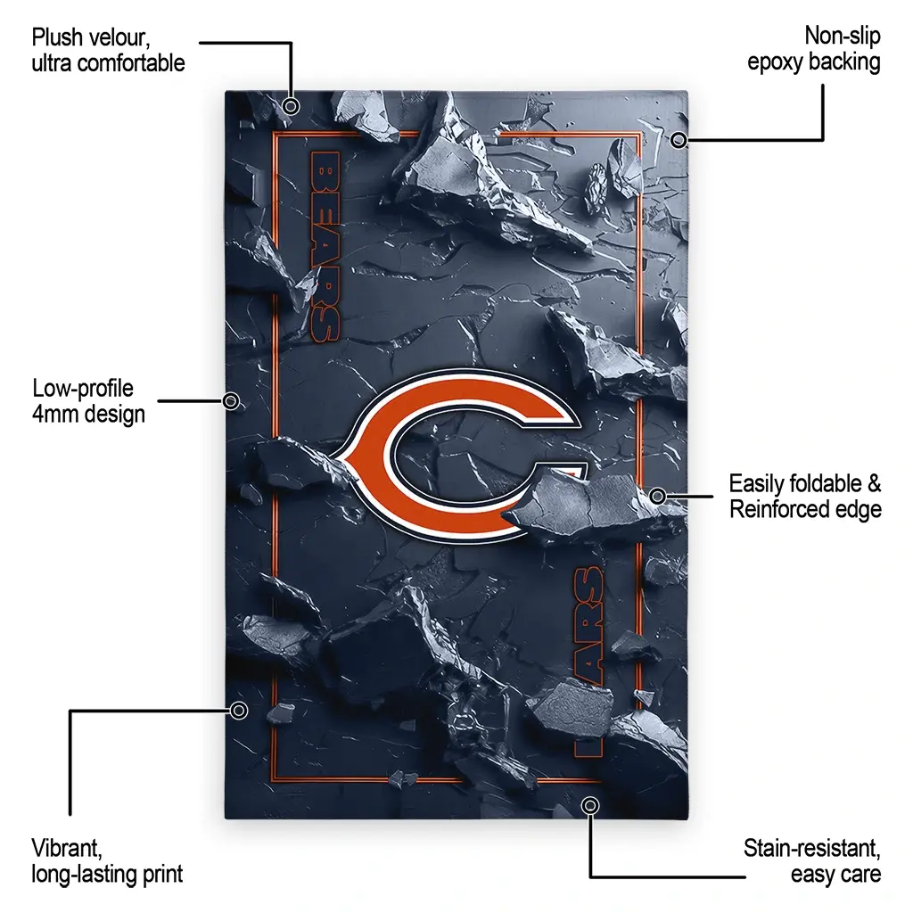 Hit a home run with your favorite team by displaying the Chicago Bears Rug – Customized Cracked Surface Design Blue from MLB Fan Zone. Featuring a bold team design and crafted with plush velour, this durable sports rug offers ultimate comfort for your home or game-day fan cave. With a quality non-slip grip and stay-flat design, it’s the perfect accessory for any die-hard fan ready to rep their team from the living room to the clubhouse.