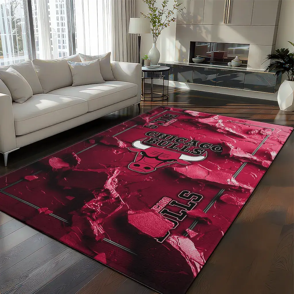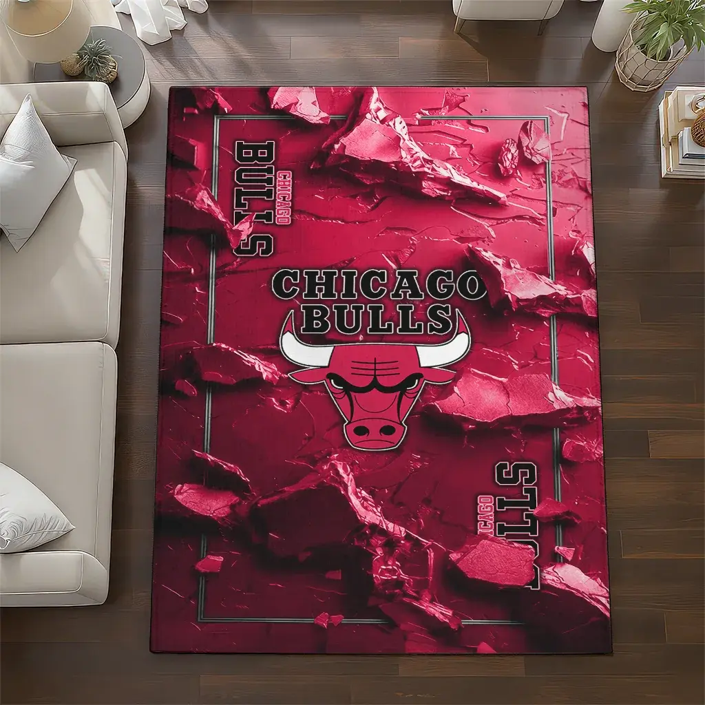 Chicago Bulls Rug – Cracked Surface Design Red