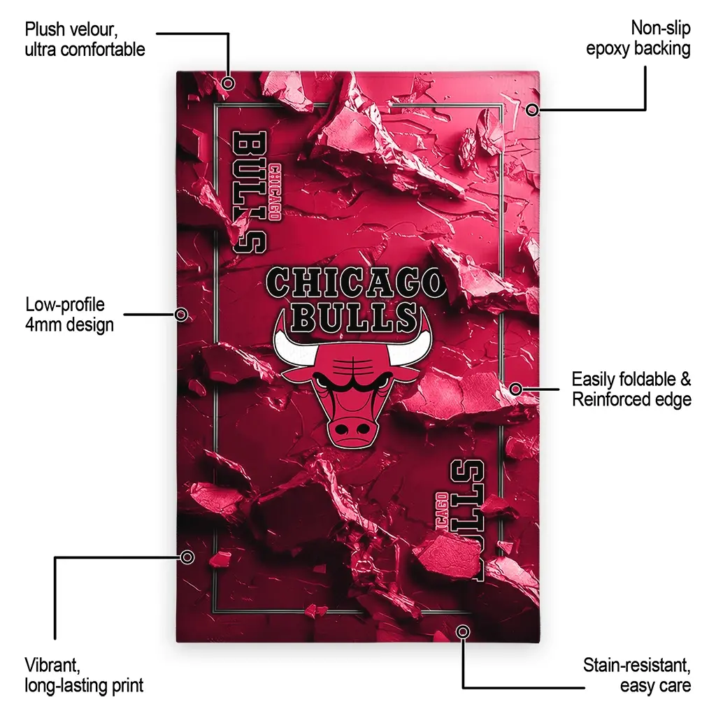 Hit a home run with your favorite team by displaying the Chicago Bulls Rug – Personalized Cracked Surface Design Red from MLB Fan Zone. Featuring a bold team design and crafted with plush velour, this durable sports rug offers ultimate comfort for your home or game-day fan cave. With a quality non-slip grip and stay-flat design, it’s the perfect accessory for any die-hard fan ready to rep their team from the living room to the clubhouse.