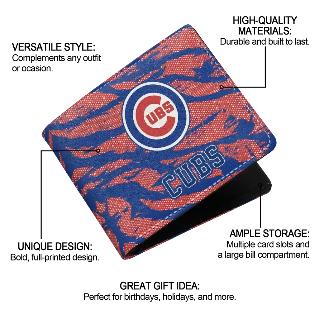 Hit a home run with Chicago Cubs by wearing the Chicago Cubs Abstract Stripes Blue Wallet. Featuring a bold team design and crafted with premium materials, this durable sports wallet offers plenty of space for your cards, cash, and game-day essentials. With a secure fold-over closure, it’s the perfect accessory for any die-hard fan ready to rep their team, from the dugout to the streets.