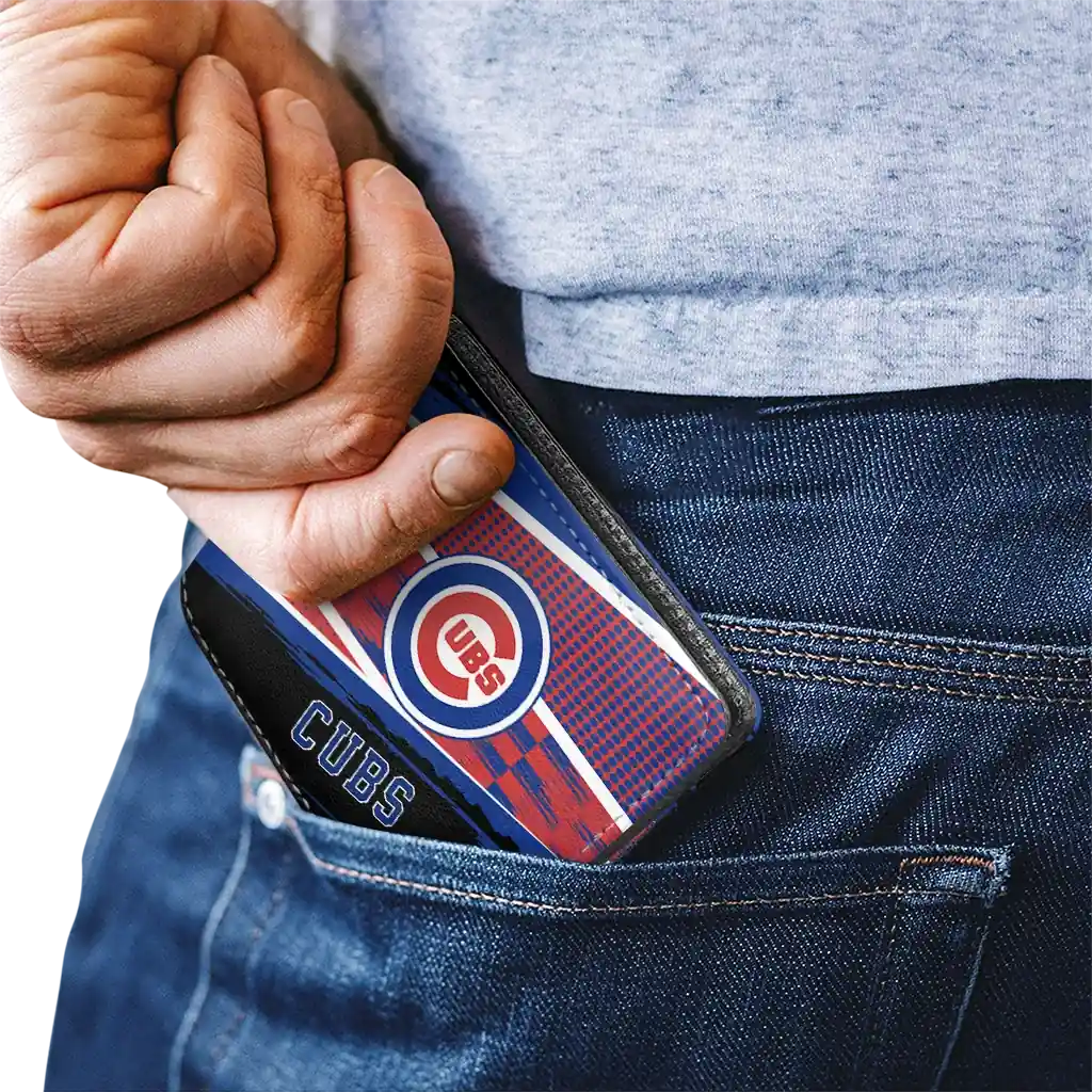 Hit a home run with Chicago Cubs by wearing the Customized Chicago Cubs Checkerboard Brush Blue Black Wallet. Featuring a bold team design and crafted with premium materials, this durable sports wallet offers plenty of space for your cards, cash, and game-day essentials. With a secure fold-over closure, it’s the perfect accessory for any die-hard fan ready to rep their team, from the dugout to the streets.