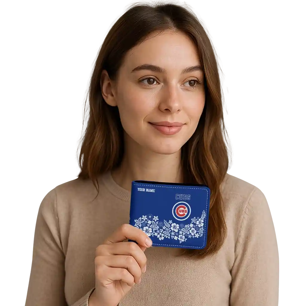 Chicago Cubs Wallet – Personalized Floral Cluster Blue White