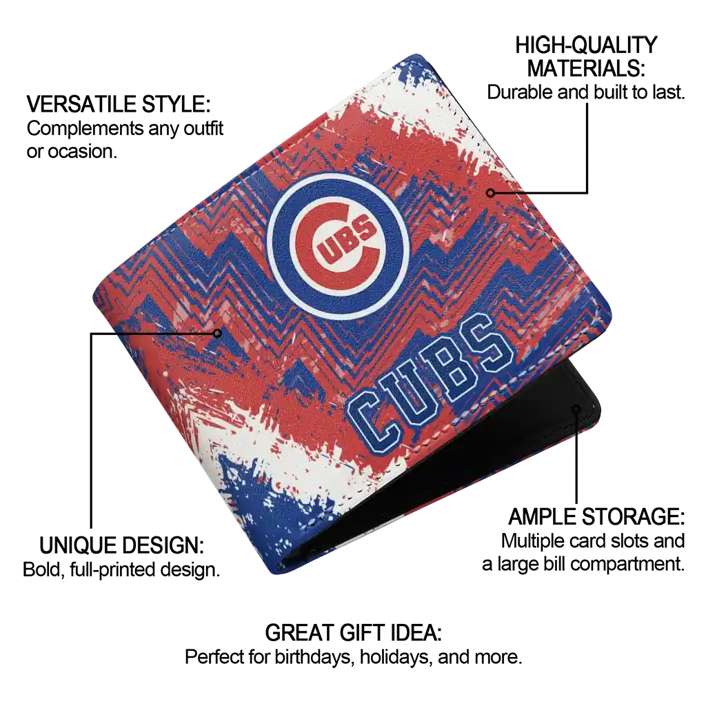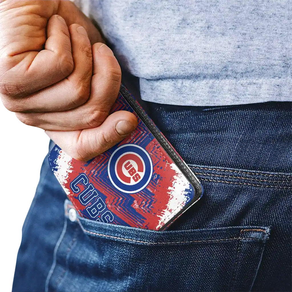 Hit a home run with Chicago Cubs by wearing the Chicago Cubs Blue White Wallet. Featuring a bold team design and crafted with premium materials, this durable sports wallet offers plenty of space for your cards, cash, and game-day essentials. With a secure fold-over closure, it’s the perfect accessory for any die-hard fan ready to rep their team, from the dugout to the streets.