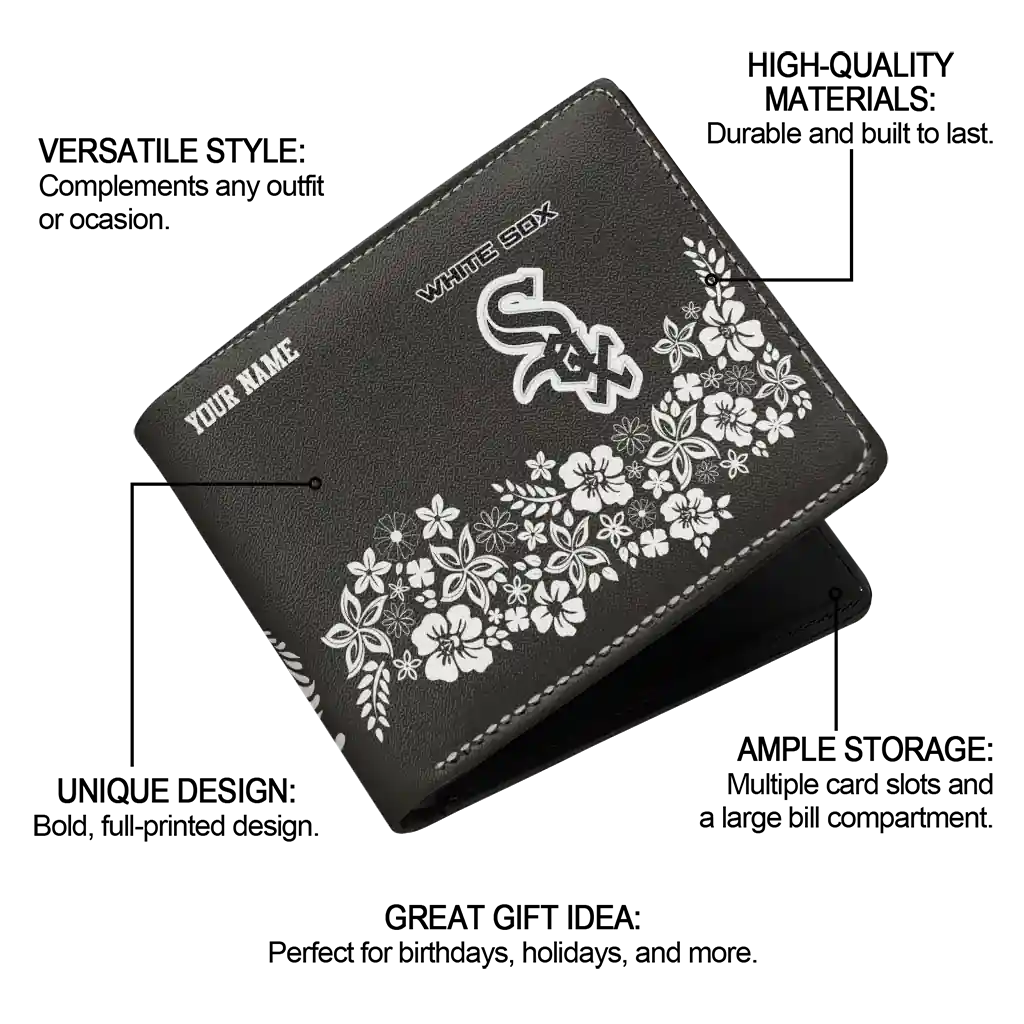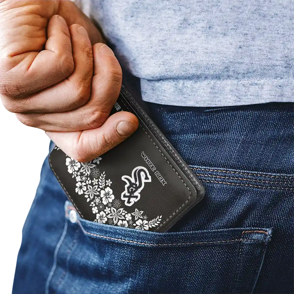 Hit a home run with Chicago White Sox by wearing the Customized Chicago White Sox Floral Cluster Black White Wallet. Featuring a bold team design and crafted with premium materials, this durable sports wallet offers plenty of space for your cards, cash, and game-day essentials. With a secure fold-over closure, it’s the perfect accessory for any die-hard fan ready to rep their team, from the dugout to the streets.