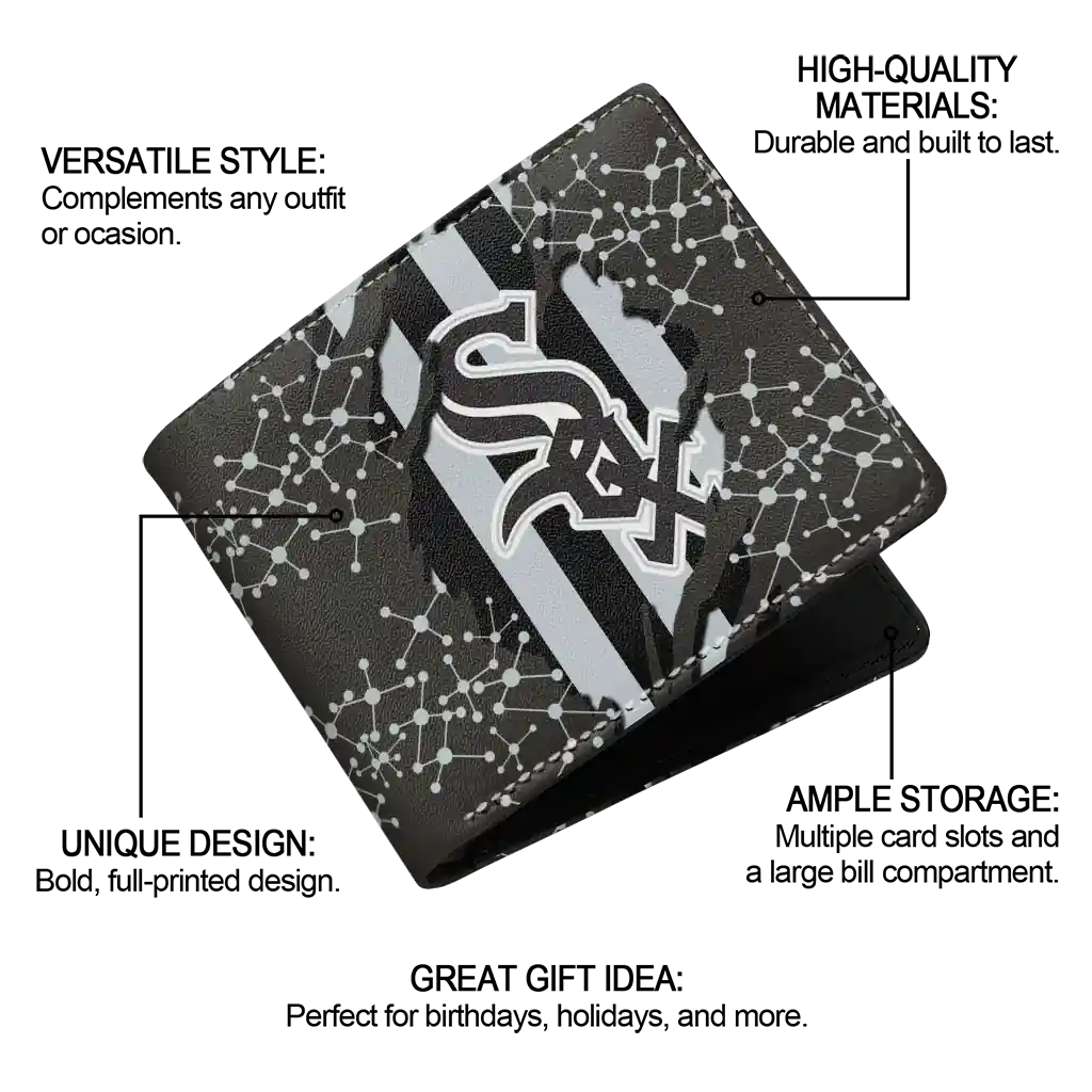 Hit a home run with Chicago White Sox by wearing the Chicago White Sox Torn Stripe Chaos Black Wallet. Featuring a bold team design and crafted with premium materials, this durable sports wallet offers plenty of space for your cards, cash, and game-day essentials. With a secure fold-over closure, it’s the perfect accessory for any die-hard fan ready to rep their team, from the dugout to the streets.