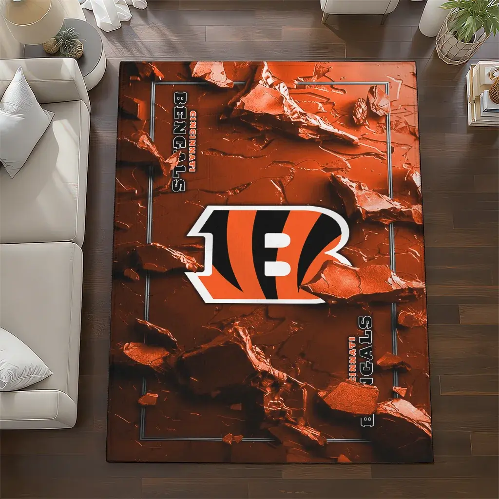 Cincinnati Bengals Rug – Cracked Surface Design Orange